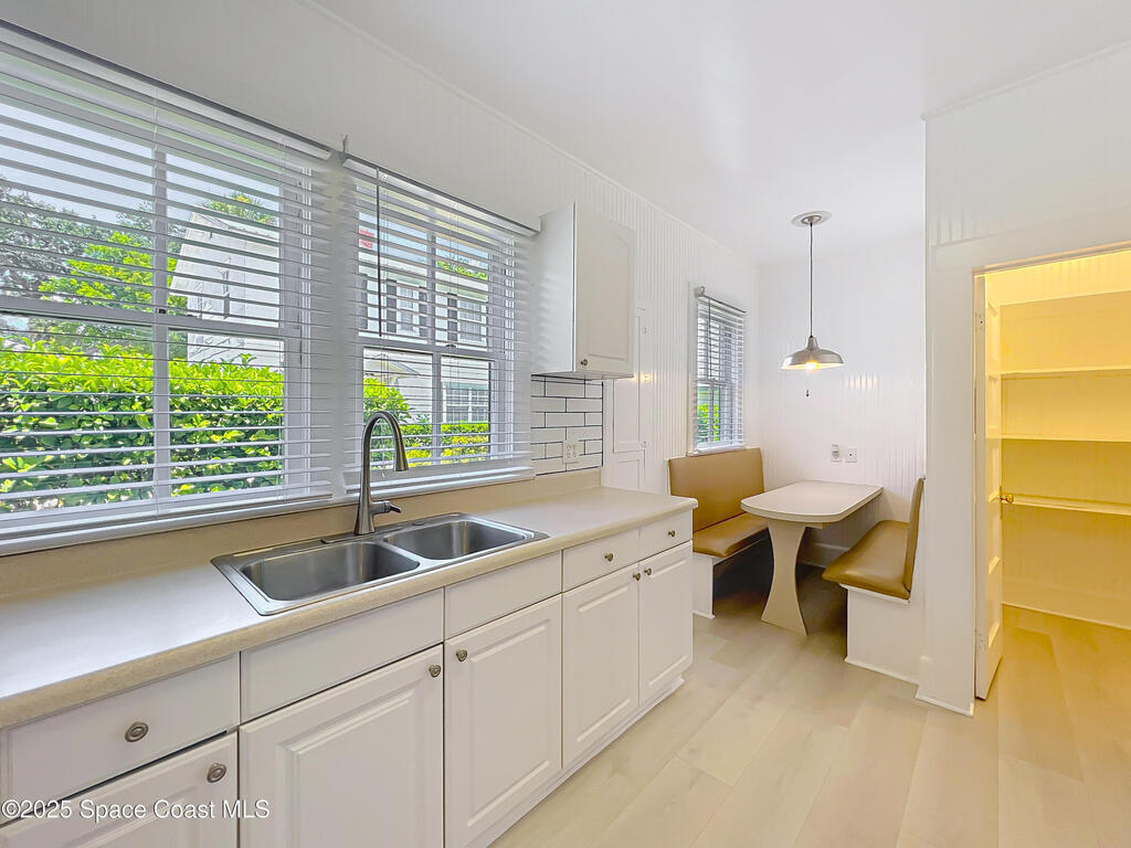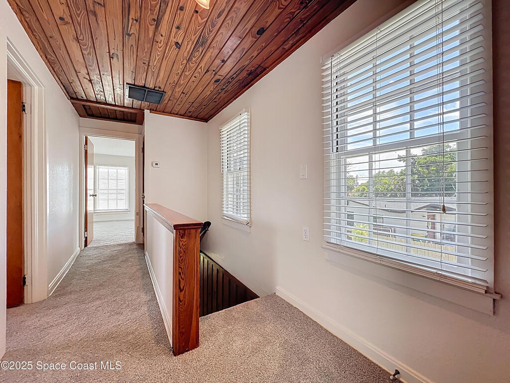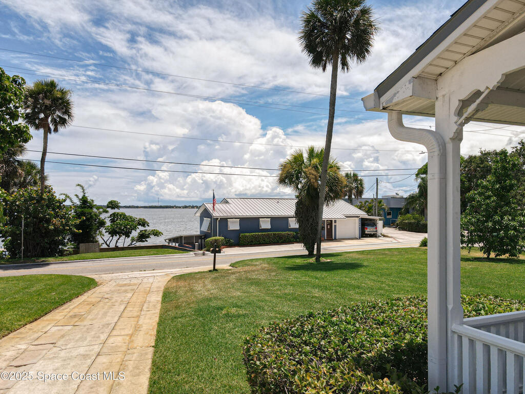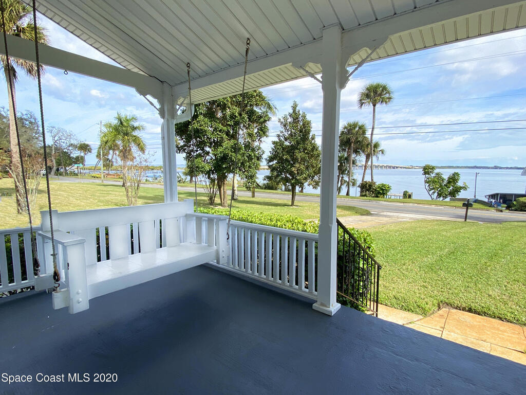 Charming Old Florida Home with River Views from nearly every room! Witness Spectacular Sunrises over the Indian River from the bedroom windows or while enjoying your morning coffee on the Front Porch Swing. This historic home has 3 upstairs bedrooms and one and a half baths. Brand new carpet in bedrooms, new LVP flooring in kitchen, and laundry room. The master bedroom is a whopping 28 feet long with ample closets and natural light. The white and bright kitchen has a banquette breakfast nook and a butler's pantry. The homey living and dining rooms feature hardwood floors, paneling, built-ins - and even a gas fireplace! There's a large concrete patio in back to enjoy. Laundry hook-ups inside. 2-car garage. Close distance to Shops, Restaurants, Cocoa Village, US1, and Hwy 528.