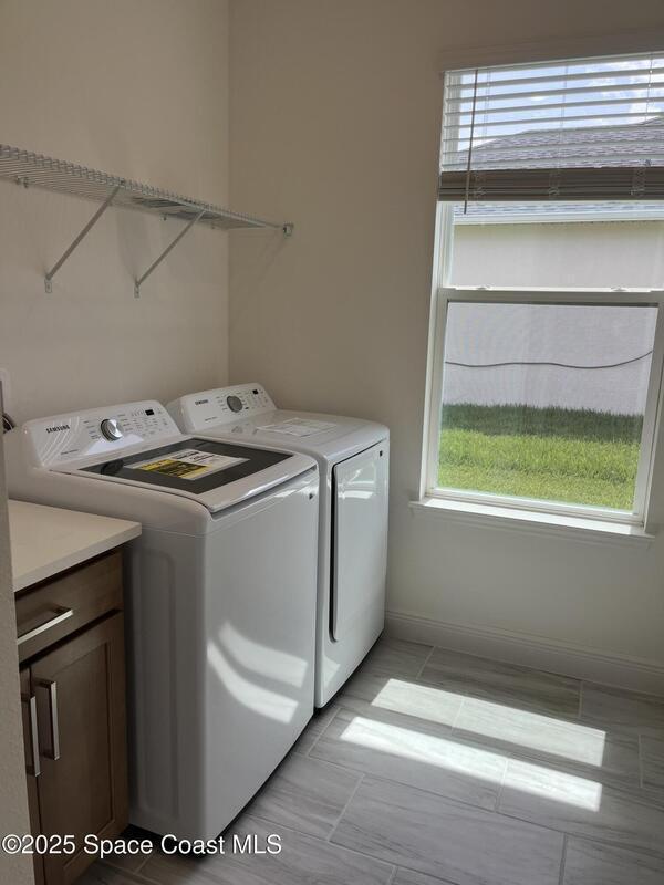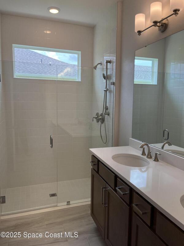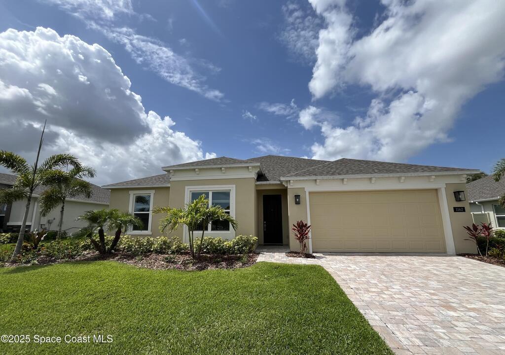 Move-in ready and beautifully appointed! This exceptional new 3-bedroom, 2-bath home features a deluxe kitchen with a built-in oven, cooktop, 42'' cabinets with crown molding, quartz countertops, and a large walk-in pantry closet--perfect for both everyday living and entertaining. Enjoy tile flooring in the main living areas and window blinds throughout. The spacious Great Room flows seamlessly to an expansive covered rear Lanai, creating an ideal indoor-outdoor lifestyle. Don't miss the opportunity to own this thoughtfully designed home! This gated community is a hidden gem in NE Palm Bay near Palm Bay Road and I-95 with quick access to major employers, schools, shopping centers, outdoor recreation, and the beaches. Mature trees in the community provide natural beauty and shade.