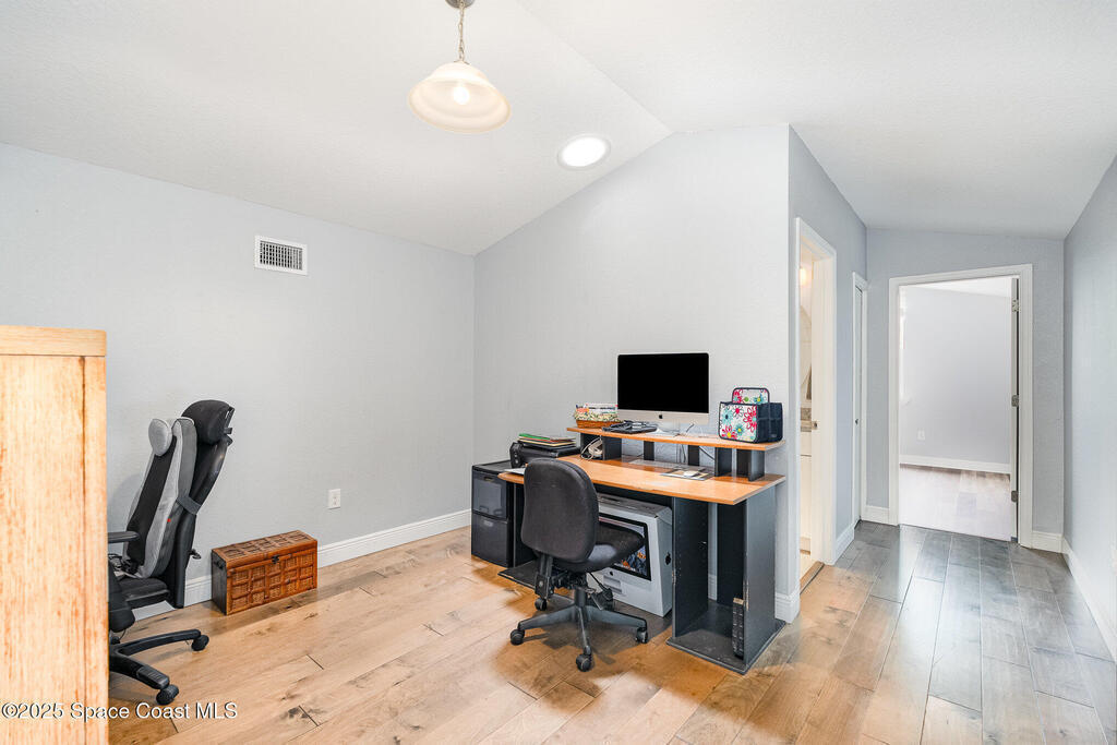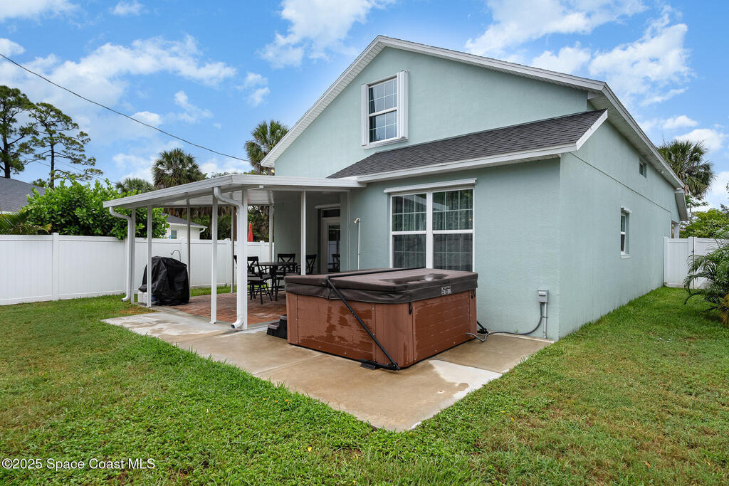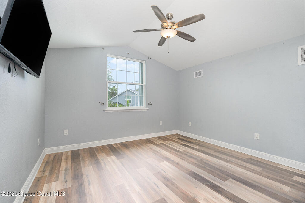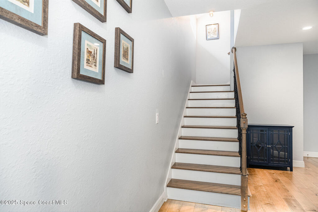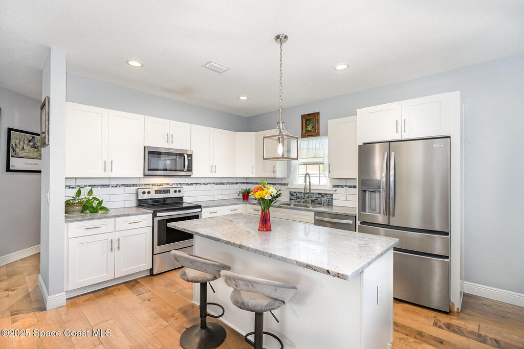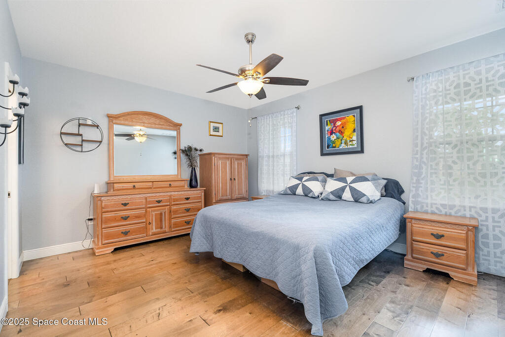 REDUCED TO SELL ! Exceptional 3bd 3ba two story modern CBS home. Custom built, offers style, functionality, and comfort. Wide birch wood floors throughout living areas create a inviting atmosphere. Open floor plan boasts gourmet kitchen complete with stainless appliances, granite countertops and custom cabinetry. Master suite features walk in shower, granite dual vanities, and ample closet space. Upstairs vaulted ceilings give home an airy feel, while loft area/office offers flexibility for work or extra living space. Equipped with modern amenities, video surveillance, water softener system through out, new A/C unit 2024, and 2019 Roof, add value and peace of mind. Laundry under air with built in's, garage features 240 electric, and hurricane shutters. Mature landscaping, fully fenced, sprinkler system. 6 person spa and outdoor shower. Centrally located with easy access to airport, hospital, beaches, tech companies and shopping. Come live the Florida Lifestyle!