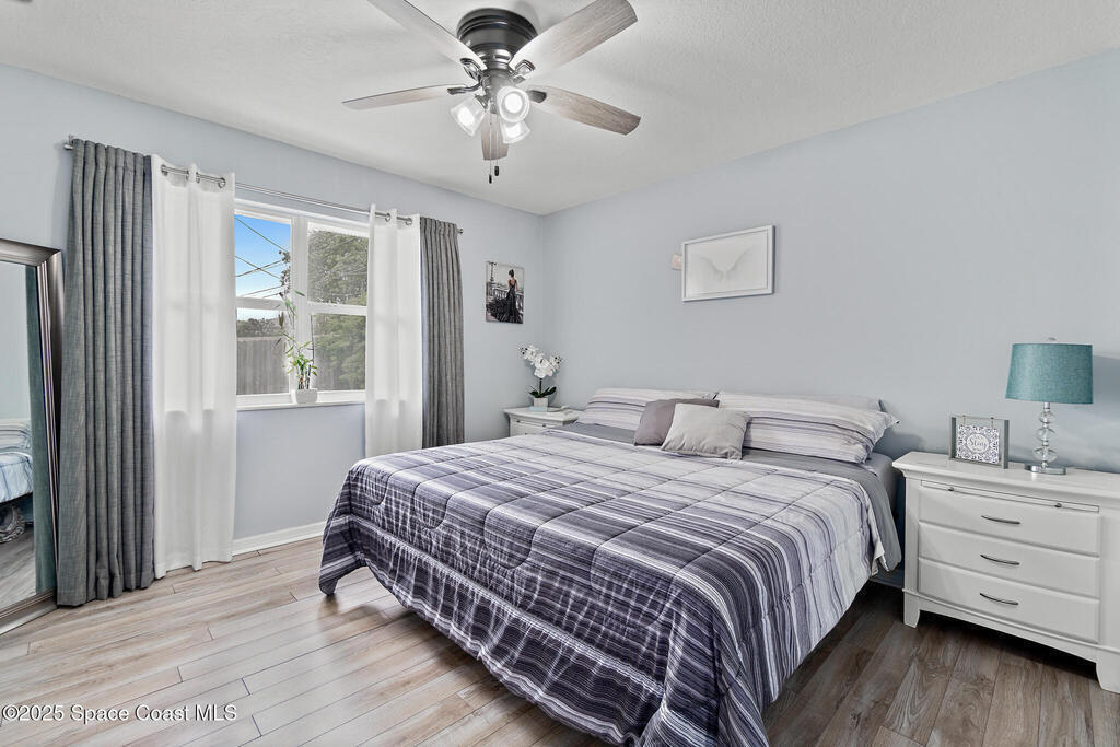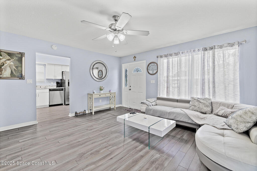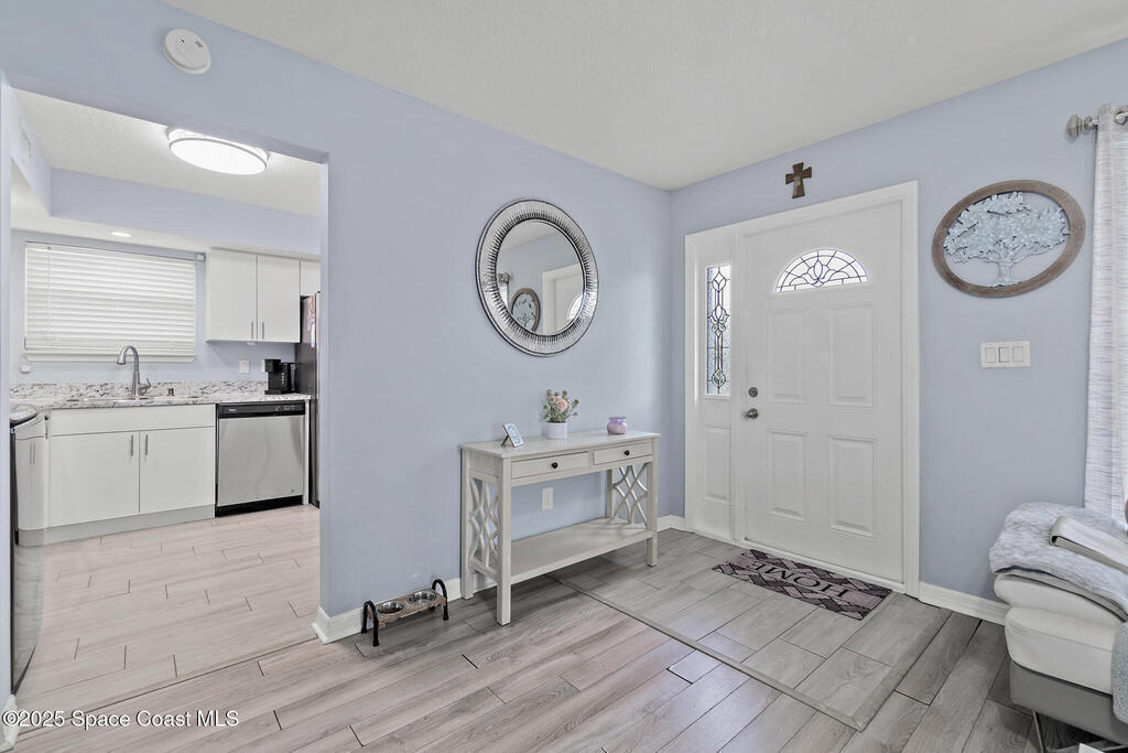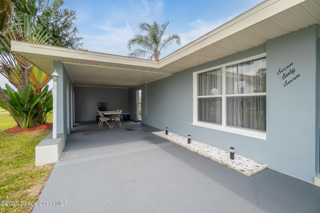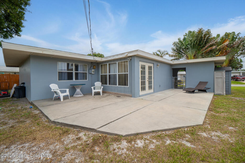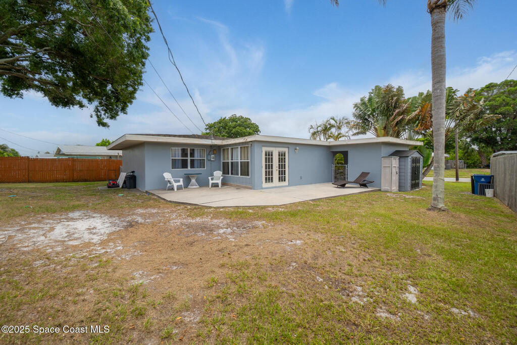 This beautiful 3-bedroom, 2-bathroom home has been completely renovated. Features include a newer roof, fresh paint throughout, new laminate and tile flooring, updated kitchen with new cabinets, countertops, and stainless appliances, plus new bathroom vanity. The master bedroom has French doors and walk-in closet. Additional highlights include eat-in kitchen, a private fenced yard with patio, an attached carport, storage shed, and central air/heat and a new HVAC. Connected to city water and sewer, this move-in ready home is close to shopping, dining, and recreational opportunities with easy access to the Indian River Lagoon and Intracoastal Waterway - perfect for fishing and watersports!
