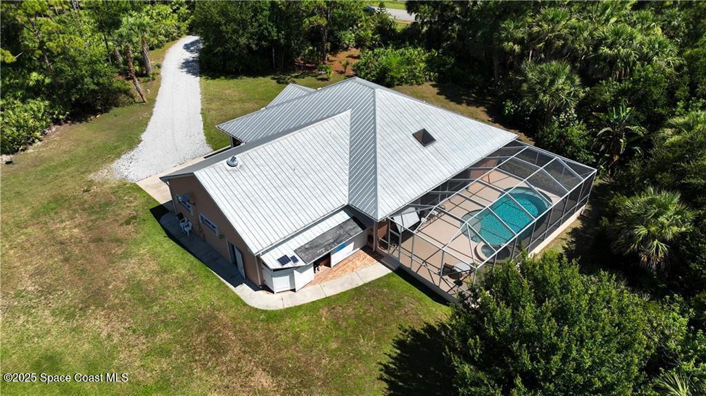 Private 2.5 acre estate designed for every passion! Car enthusiasts rejoice with a 2400sf insulated metal garage w/electric & car lift! A detached workshop calls to the hobbyist. Inside, generous spaces unfold w/exciting architecture including tray ceilings, arched doorways, decorative plant shelves, wood flooring. The generous kitchen has '22 SS appls, glass accent doors, granite counters w/plenty of space for entertaining crowds. Enjoy Florida living on 2 screened porches w/tongue and groove ceilings, plus a refreshing screened pool & spa. Newer '24 AC & septic system ensure peace of mind.