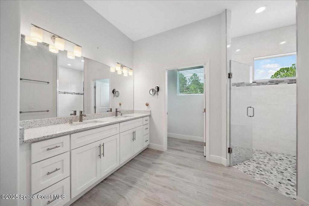 Spacious Country Retreat with In-Law Suite in Grant. A beautifully designed farmhouse-style estate offering space, comfort, and versatility on an acre of land. This stunning property features a 5-bedroom, 3.5-bath main residence with a desirable open-concept and split floor plan, perfectly blending charm and functionality for modern living. Step inside and be greeted by expansive living areas filled with natural light, an office for remote work, and a chef's kitchen that's an entertainer's dream--boasting a massive 10.5-foot island, double ovens, and generous storage. The seamless flow continues outdoors to a private saltwater pool and spa, ideal for relaxing or hosting guests under the stars. The main house includes a private two-car garage with ample space to park boats and RV's. While the detached in-law suite offers ultimate flexibility for multi-generational living or guests. With 2 bedrooms, 2 full baths, a full kitchen, spacious living and dining areas, and office, and its own