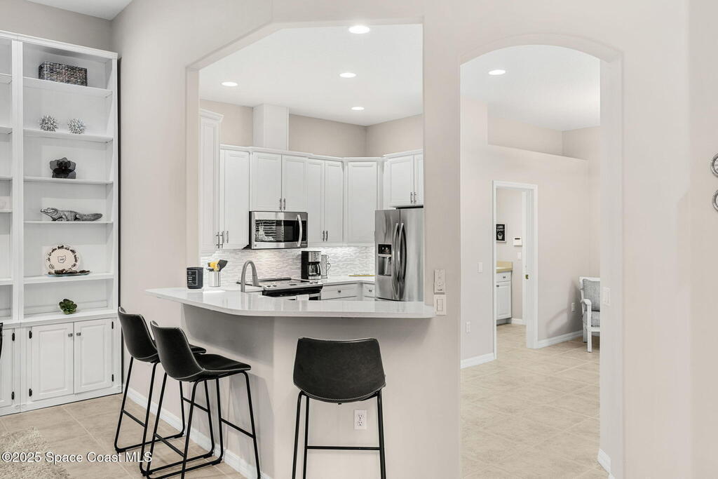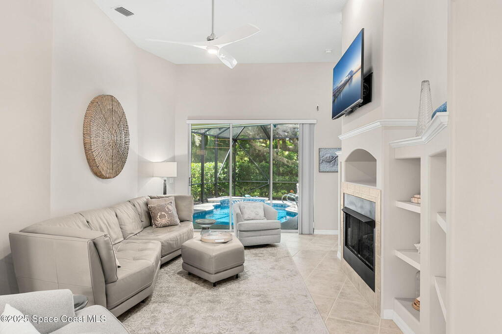 Welcome to your slice of paradise in the prestigious Aquarina community, where luxury meets leisure on Florida's scenic Space Coast. Overlooking the 11th fairway, this 3-bed, 2.5-bath pool home offers elegance, comfort, and resort-style living. Thoughtfully updated interior featuring a modern kitchen with quartz countertops, stainless steel appliances. The open-concept living area flows seamlessly to the outdoors, where sliding glass doors frame views of your private, heated pool and the lush fairway beyond. The primary suite also enjoys tranquil poolside vistas, creating a serene retreat to start and end your day. Meticulously maintained and upgraded for peace of mind, including: Brand new tile roof, Hurricane protection on all openings, New water heater, 2022 AC system and lawn and landscaping included!!