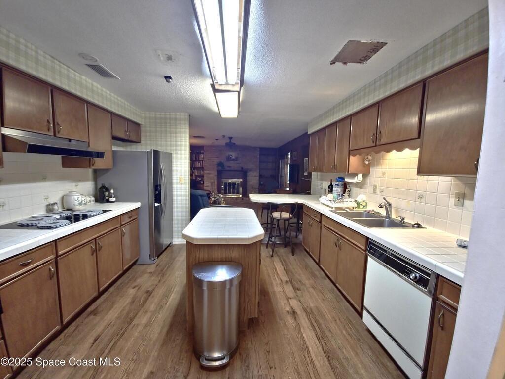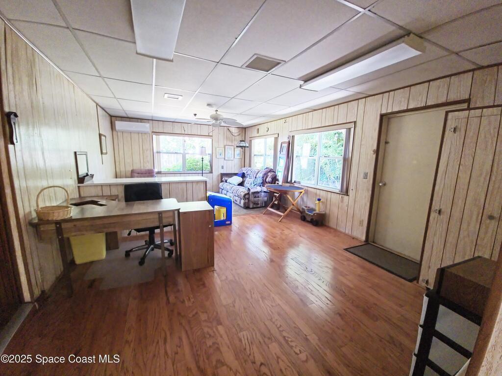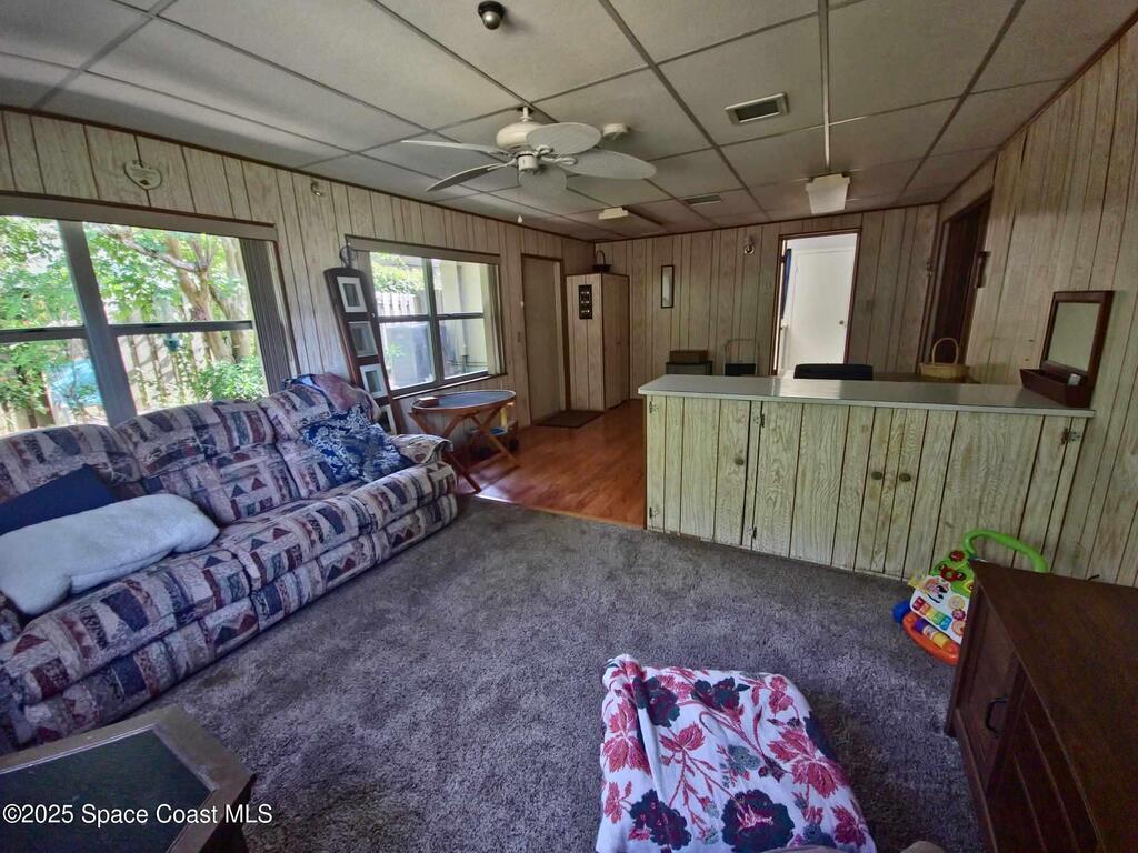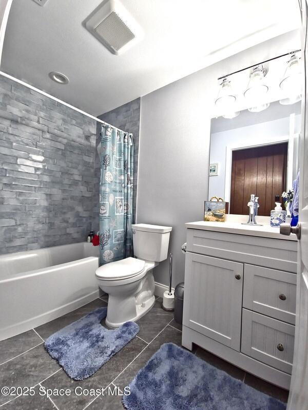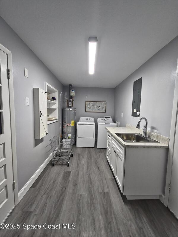 Opportunity knocks in the heart of Titusville! This home is priced to sell, so time is of the essence! This is your chance to own a structurally sound, concrete block home with an open floor plan! UPGRADES - Brand new roof and gutters, new HVAC system, electrical upgraded, new plumbing including drain lines, supply lines, and fixtures, both bathrooms completely renovated with modern tile, fixtures, and finishes and fully renovated laundry room. Primary bedroom is also upgraded. There is an additional large family room space that has a separate mini-split AC unit. Large, beautiful back yard with mature trees, a 285 square foot outbuilding that is currently used as a fun space with pool table. There is a 2019 gas hot water heater. Washer and dryer included. Additional room off garage that would make a nice shop with lots of pegboard! Custom privacy fence around back yard. There is a well with a sprinkler system. Most of the big-ticket Items have been taken care of.