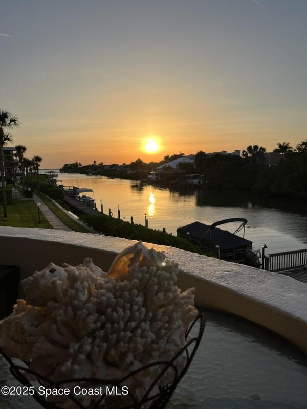 WATCH MANATEES & DOLPHINS & ROCKETS play from the comfort of your living room, in DIRECT SIGHTLINE. This Specific unit is Uniquely positioned to do just that! Keep your BOAT DOCKED just below you FREE; YES, LONGTERM & FREE; NO DOCK FEE. Enjoy watching AMAZING SUNSETS from your Balcony; or while grilling at one of two Beautiful spots on Property with picnic tables & smoker grills directly on the River or next to the Cabana on the canal side, where your KAYAKS are STORED, also at NO CHARGE. Enjoy Dining out? You are a few minutes WALK leaving your car parked under your CARPORT TO several RESTAURANTS in Cape Canaveral. This Gated Community is ready for you to Make your SERENE Home. BOATERS also enjoy No Fixed bridges as you Head out on the RIVER or to OPEN water. This 2/2 w/Carport is a BOATERS and NATURE LOVERS DREAM, PRICED to update & make your own.