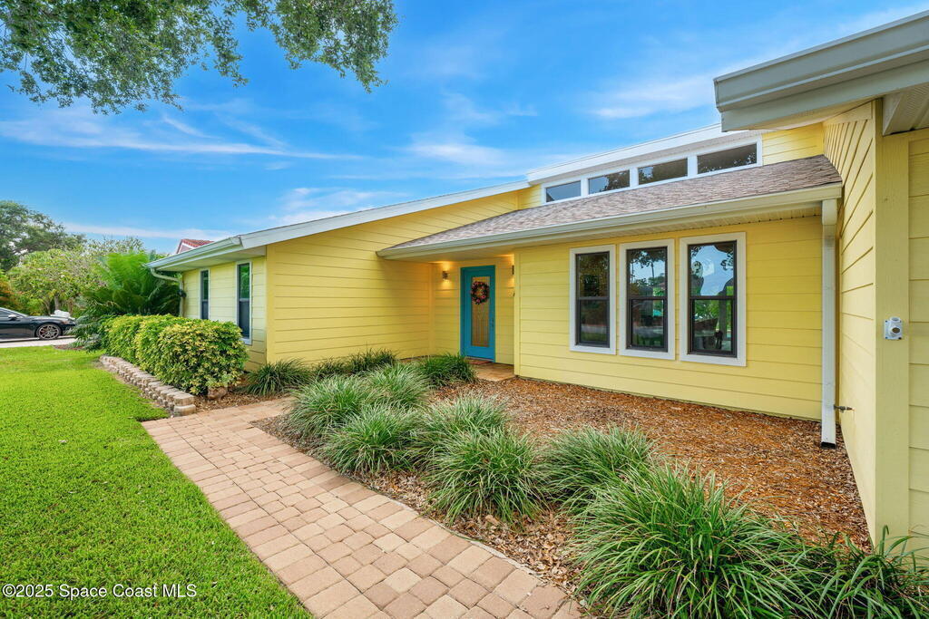 Drift into Florida coastal living in this HGTV-featured Cocoa Beach gem! Nestled on an oversized corner lot along one of the most desirable streets in town, this 3-bed, 2-bath canal-front retreat offers direct river and Thousand Islands access from your private deck w/ kayak launch & newer seawall. Enjoy sunny days by the sparkling pool and relaxing nights by the wood-burning fireplace. Inside, find wood-plank tile throughout, cedar beams in the kitchen, cathedral ceilings, and walk-in closets in every bedroom. Upgrades include impact windows, newer impact sliders, a wind-rated garage door, radiant barrier in the attic, cement board siding, & a newer roof plus no cast iron pipes. The underground utilities and paver driveway add charm and convenience. Located minutes from top-rated schools, downtown Cocoa Beach, Ramp Road Park, & with easy walking/biking beach access just moments away, this coastal oasis blends laid-back beach vibes with everyday luxury. Your slice of paradise awaits.