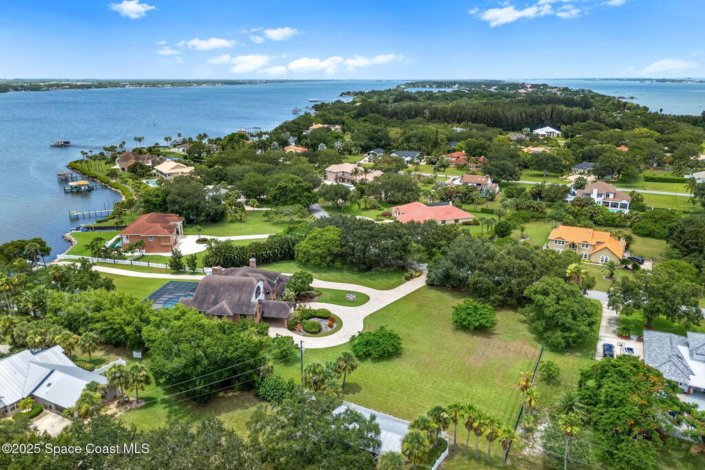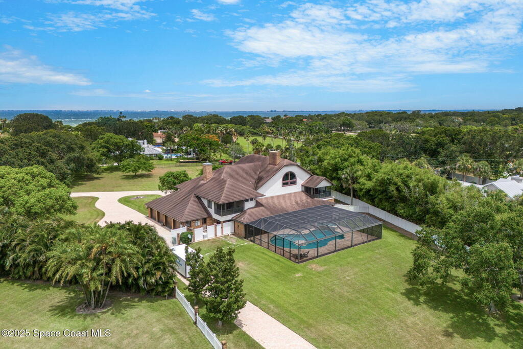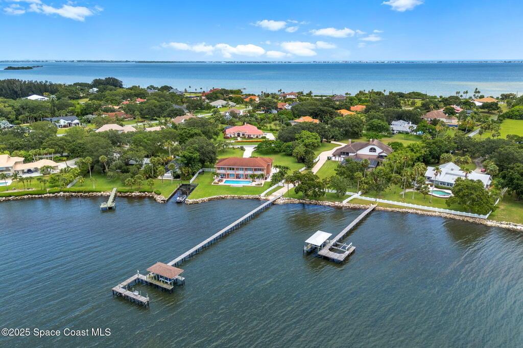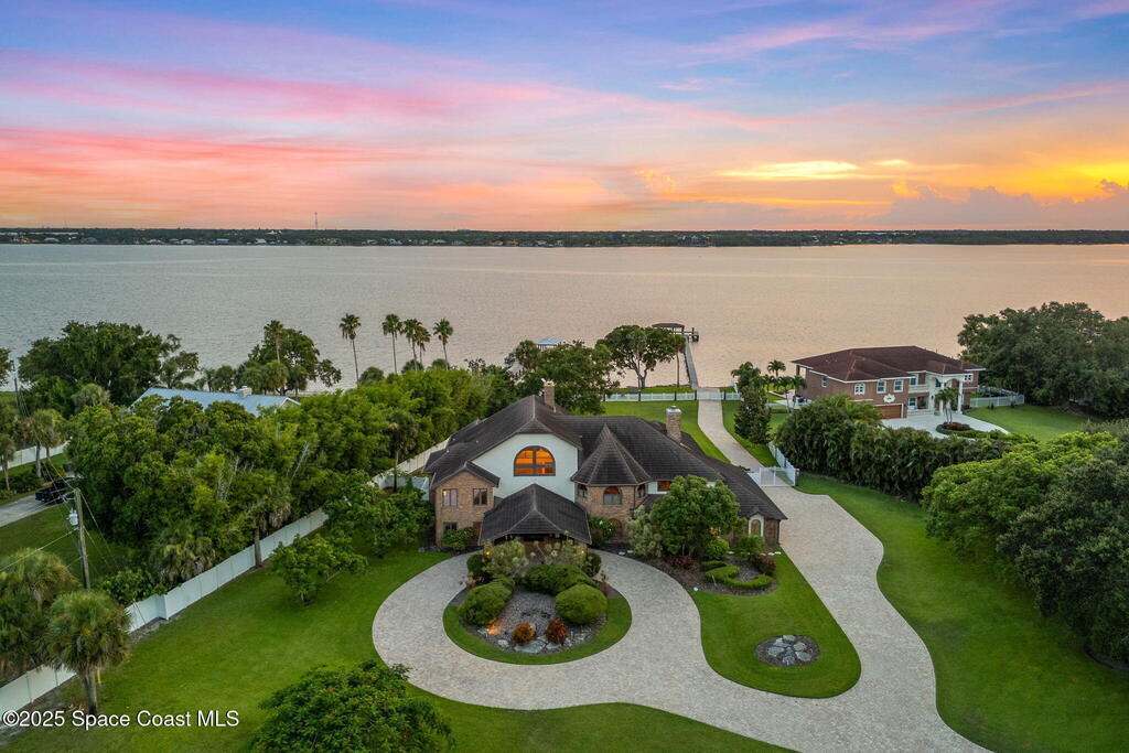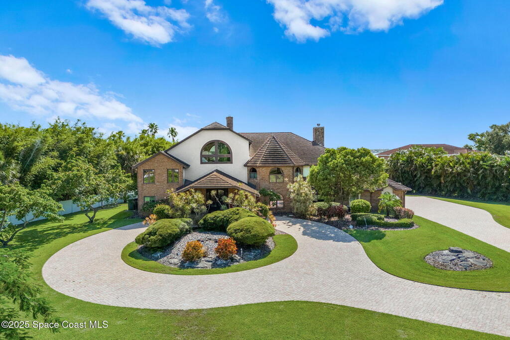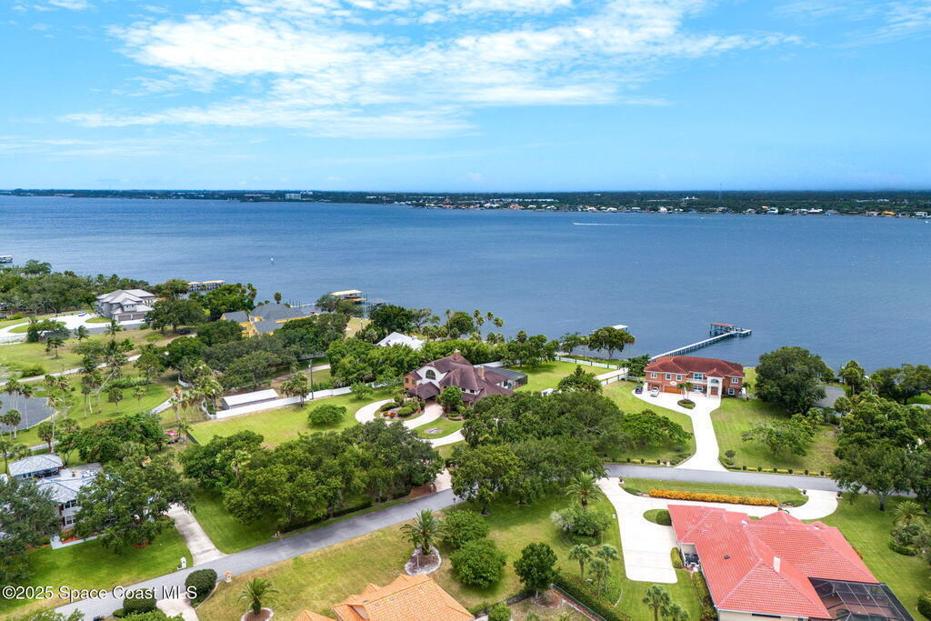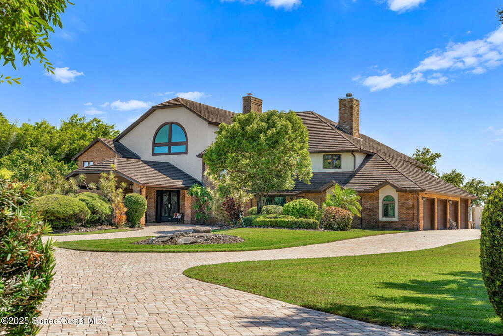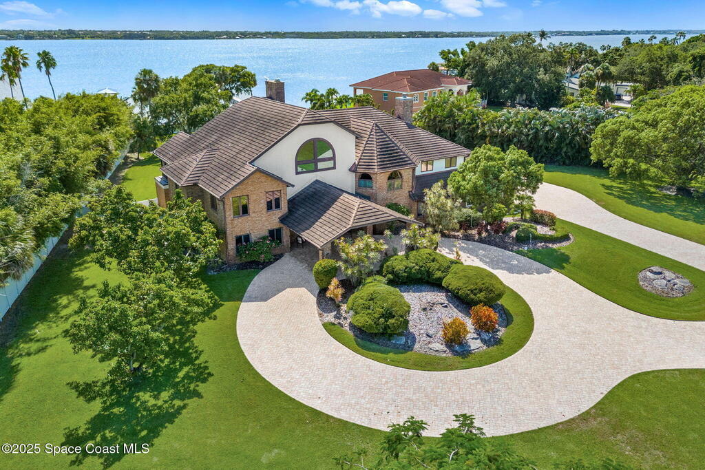 This extraordinary 6-bedroom, 5.5-bath riverfront estate is a private retreat on over 2 lush acres in the heart of Merritt Island. With 105 feet of shoreline and more than 6,600 sq. ft. of interior space, this property was designed for entertaining, multigenerational living, and serene waterfront enjoyment.A rare private boat ramp, 300-foot dock with double slips, 10,000-lb lift, and direct access to the Indian River make this a true boater's dream. Watch rocket launches from your own backyard or unwind beside the deep, heated pool and spa. The outdoor kitchen includes a grill, smoker, fridge, and covered lounge space ideal for entertaining. The backyard feels incredibly private, framed by mature landscaping that creates a peaceful sanctuary.Inside, a dramatic two-story foyer opens to refined living areas with wood and tile floors, two fireplaces, and a wet bar.