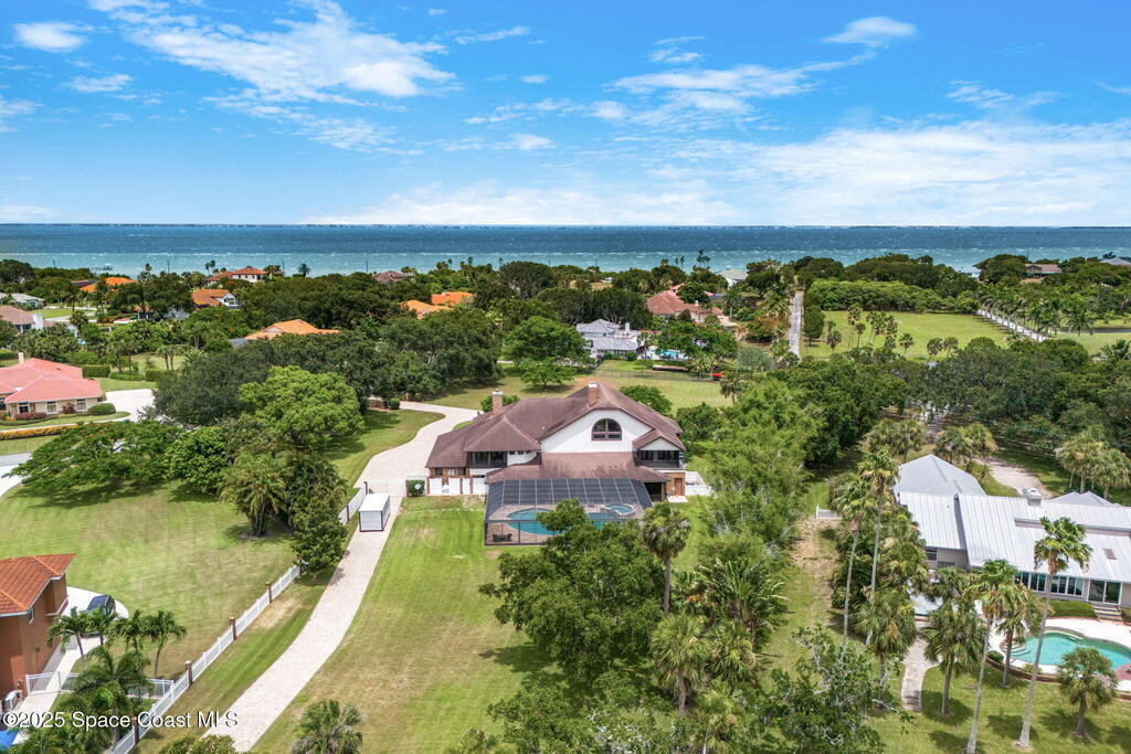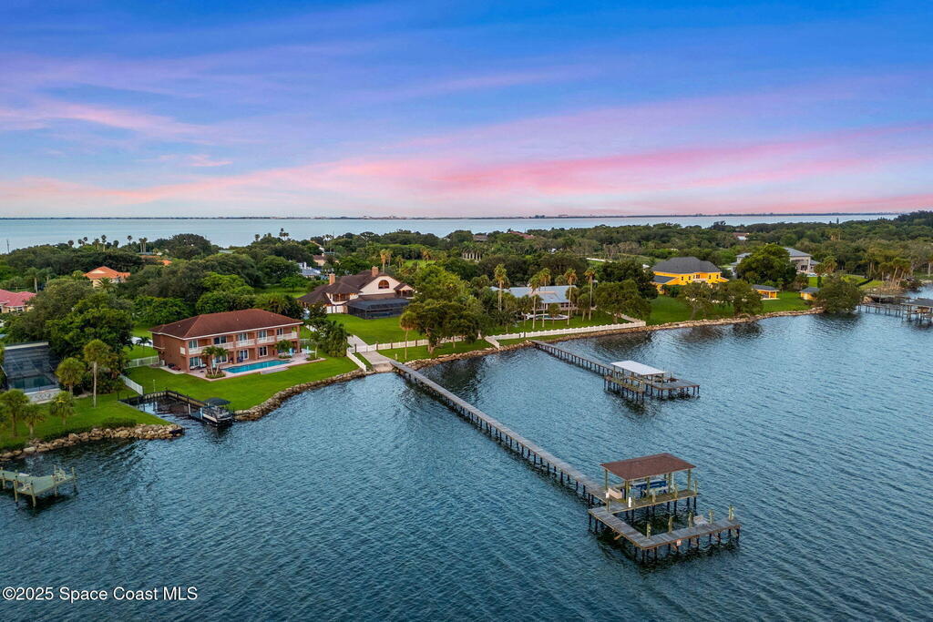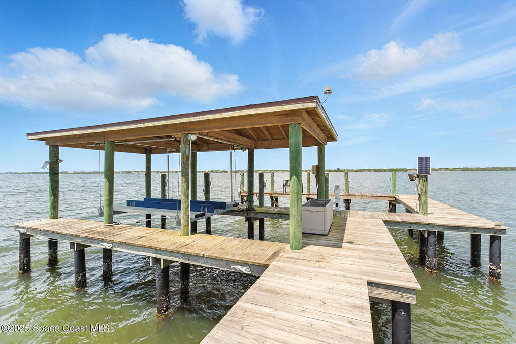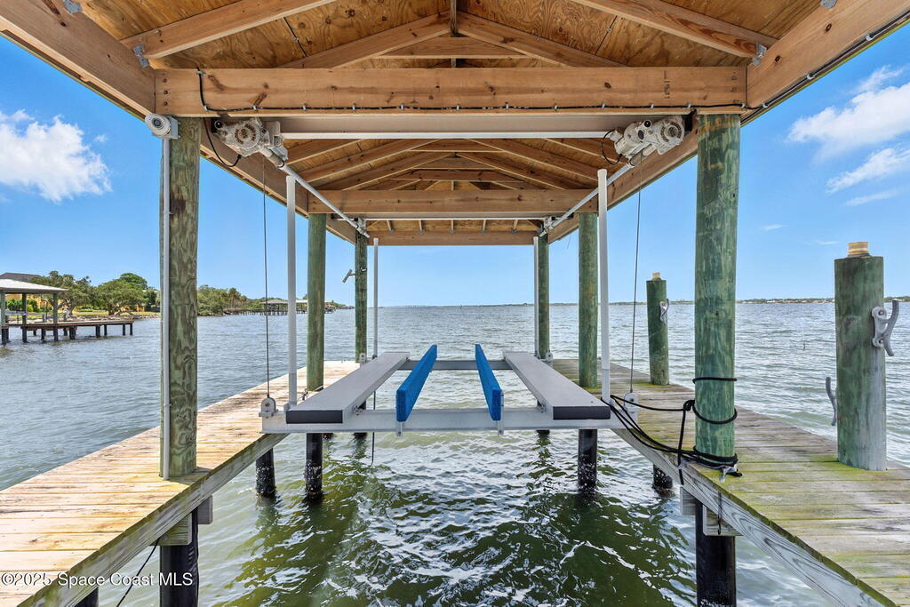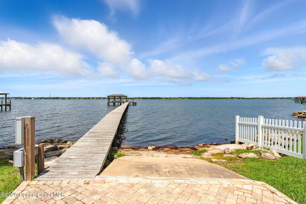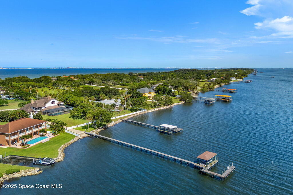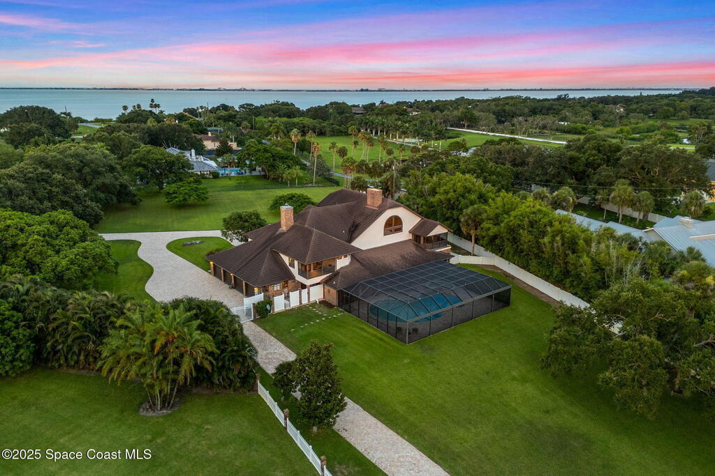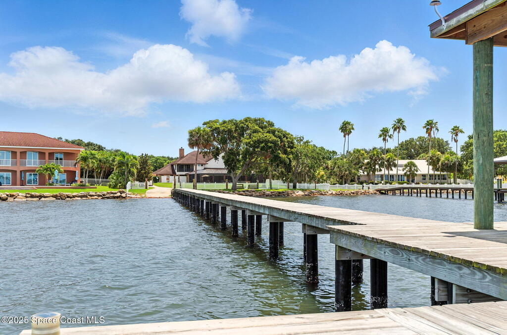 This extraordinary 6-bedroom, 5.5-bath riverfront estate is a private retreat on over 2 lush acres in the heart of Merritt Island. With 105 feet of shoreline and more than 6,600 sq. ft. of interior space, this property was designed for entertaining, multigenerational living, and serene waterfront enjoyment.A rare private boat ramp, 300-foot dock with double slips, 10,000-lb lift, and direct access to the Indian River make this a true boater's dream. Watch rocket launches from your own backyard or unwind beside the deep, heated pool and spa. The outdoor kitchen includes a grill, smoker, fridge, and covered lounge space ideal for entertaining. The backyard feels incredibly private, framed by mature landscaping that creates a peaceful sanctuary.Inside, a dramatic two-story foyer opens to refined living areas with wood and tile floors, two fireplaces, and a wet bar.