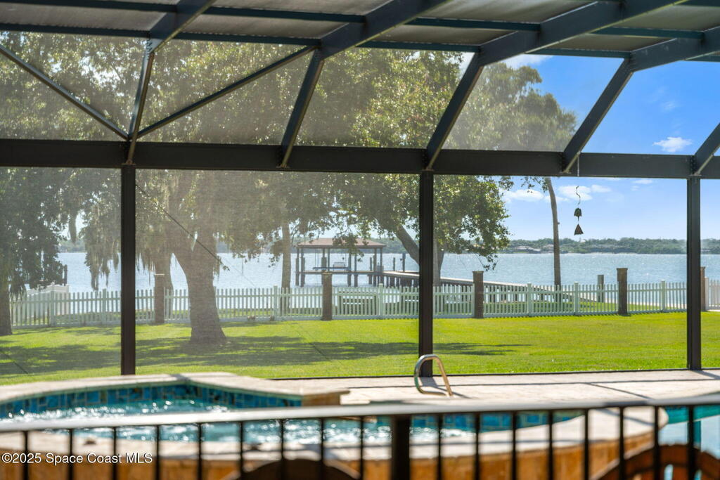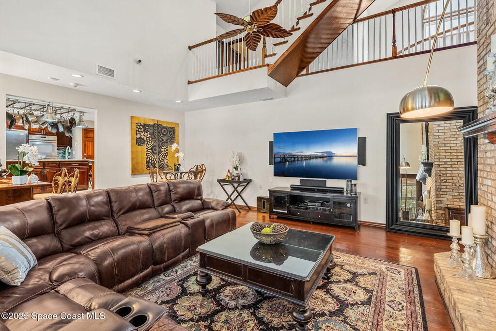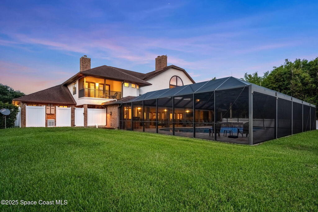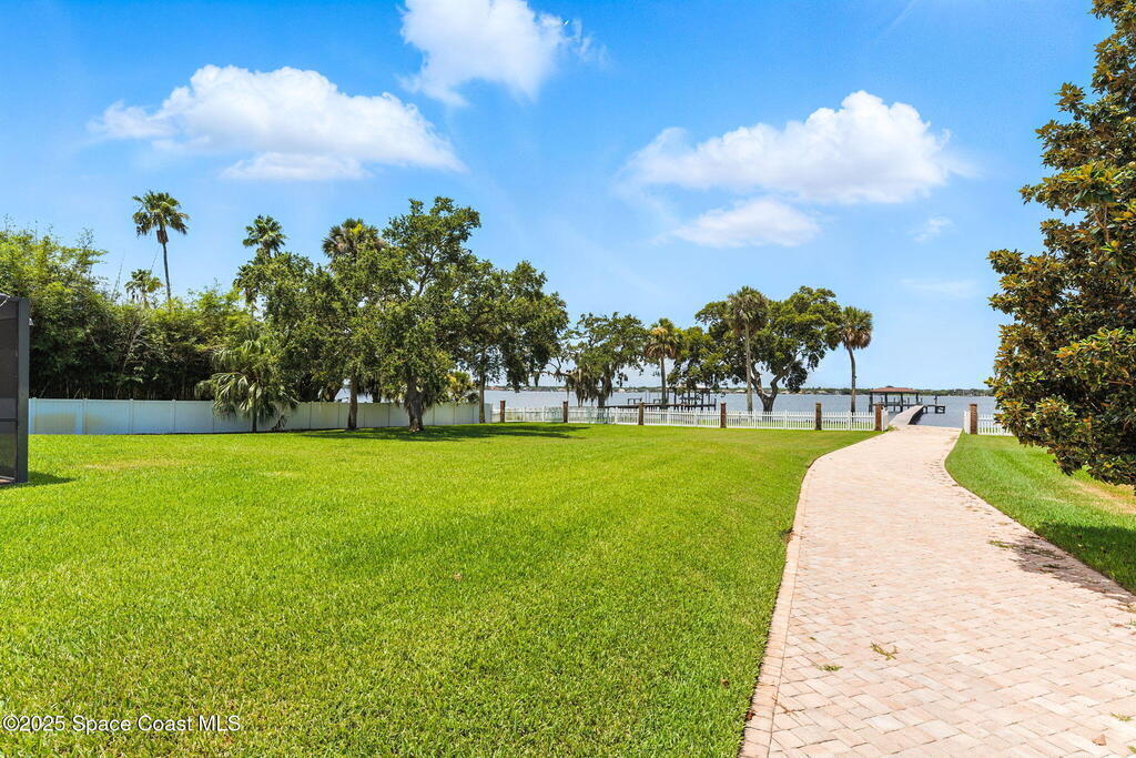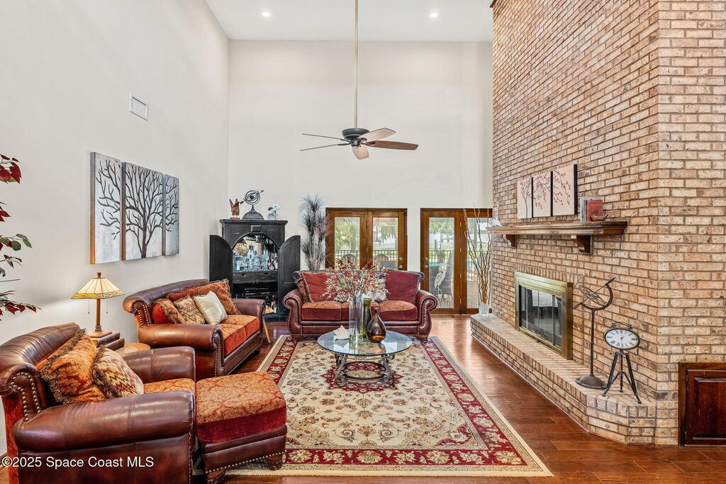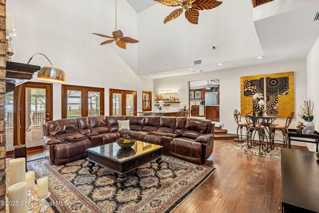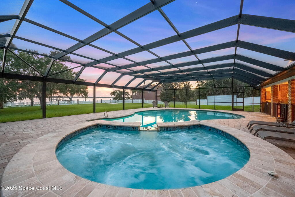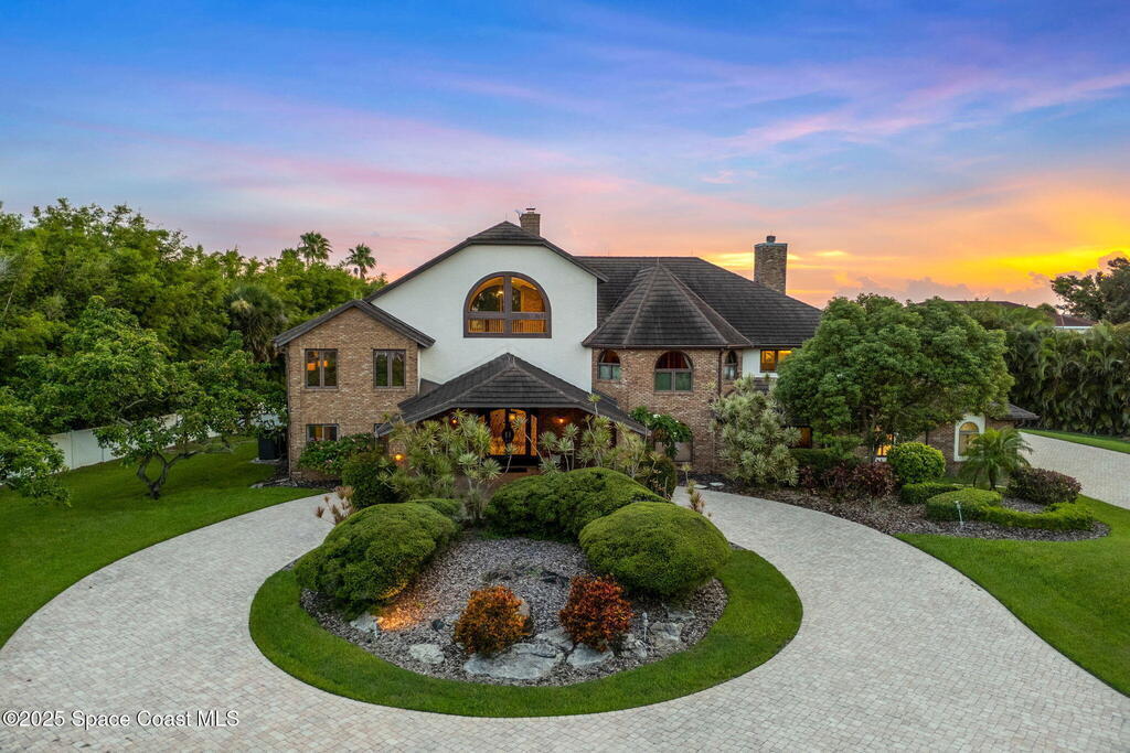 This extraordinary 6-bedroom, 5.5-bath riverfront estate is a private retreat on over 2 lush acres in the heart of Merritt Island. With 105 feet of shoreline and more than 6,600 sq. ft. of interior space, this property was designed for entertaining, multigenerational living, and serene waterfront enjoyment.A rare private boat ramp, 300-foot dock with double slips, 10,000-lb lift, and direct access to the Indian River make this a true boater's dream. Watch rocket launches from your own backyard or unwind beside the deep, heated pool and spa. The outdoor kitchen includes a grill, smoker, fridge, and covered lounge space ideal for entertaining. The backyard feels incredibly private, framed by mature landscaping that creates a peaceful sanctuary.Inside, a dramatic two-story foyer opens to refined living areas with wood and tile floors, two fireplaces, and a wet bar.