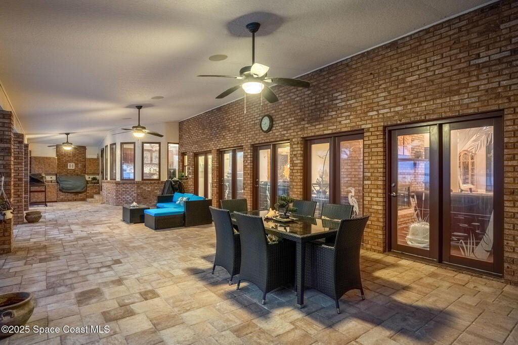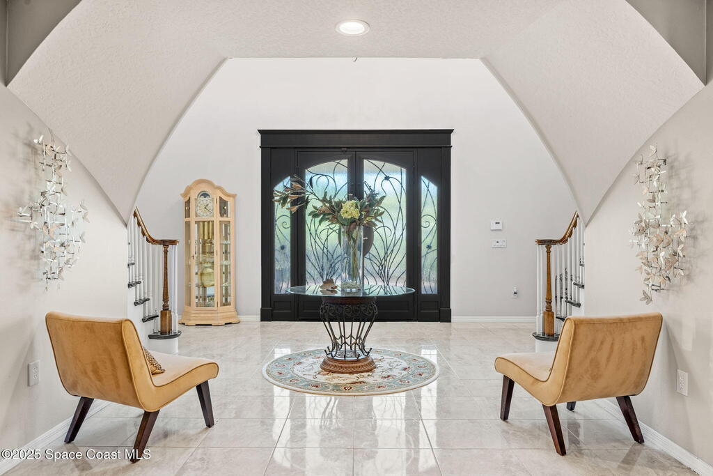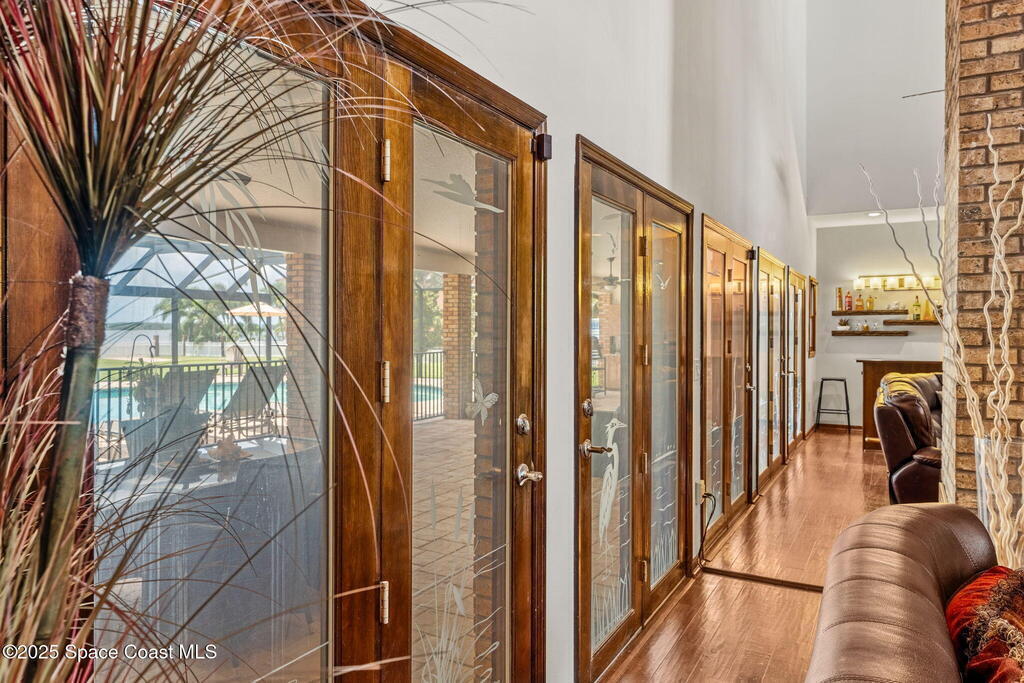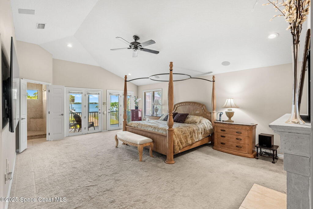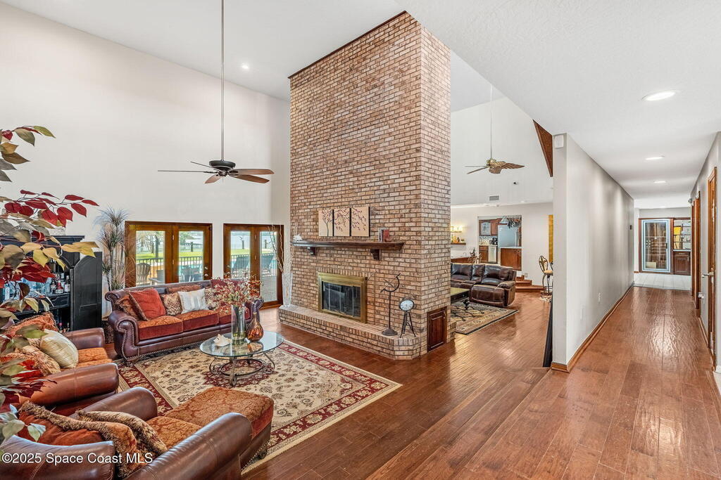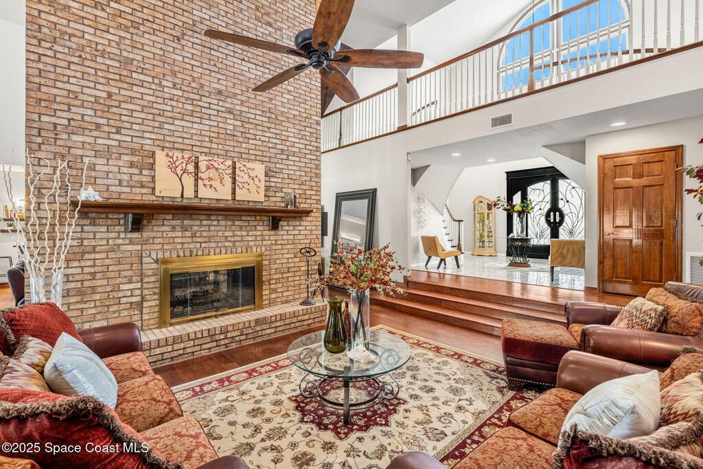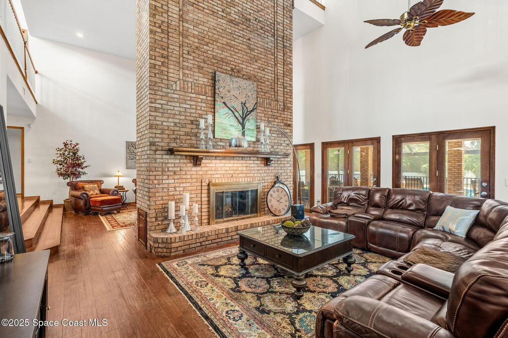 This extraordinary 6-bedroom, 5.5-bath riverfront estate is a private retreat on over 2 lush acres in the heart of Merritt Island. With 105 feet of shoreline and more than 6,600 sq. ft. of interior space, this property was designed for entertaining, multigenerational living, and serene waterfront enjoyment.A rare private boat ramp, 300-foot dock with double slips, 10,000-lb lift, and direct access to the Indian River make this a true boater's dream. Watch rocket launches from your own backyard or unwind beside the deep, heated pool and spa. The outdoor kitchen includes a grill, smoker, fridge, and covered lounge space ideal for entertaining. The backyard feels incredibly private, framed by mature landscaping that creates a peaceful sanctuary.Inside, a dramatic two-story foyer opens to refined living areas with wood and tile floors, two fireplaces, and a wet bar.