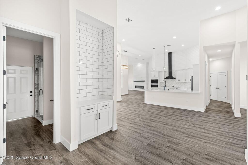 Brand New Home on 2.72 Acres! This stunning 4-bedroom, 3-bath residence features a spacious 3-car side-entry garage with a paver driveway and welcoming double front doors with elegant leaded glass. Inside, you'll find high ceilings, impact windows, and an open island kitchen with quartz countertops, a stylish tile backsplash, and stainless steel appliances. The family room boasts an accent wall and cozy fireplace, while the formal living and dining rooms are perfect for entertaining. The expansive primary suite offers two walk-in closets and a luxurious bath with double sinks, built-in shelving, a soaking tub, and a separate shower. Step outside to the large paver patio -- ideal for relaxing or hosting gatherings -- all surrounded by peaceful green space.