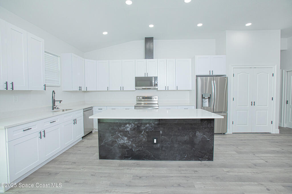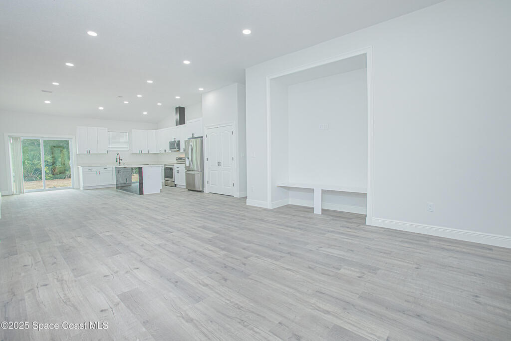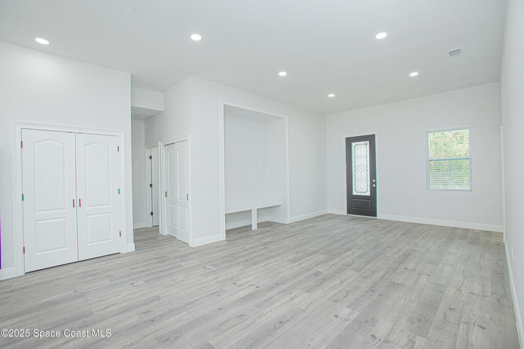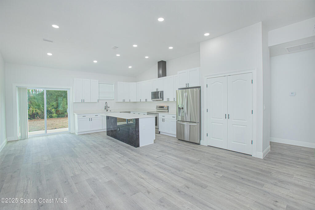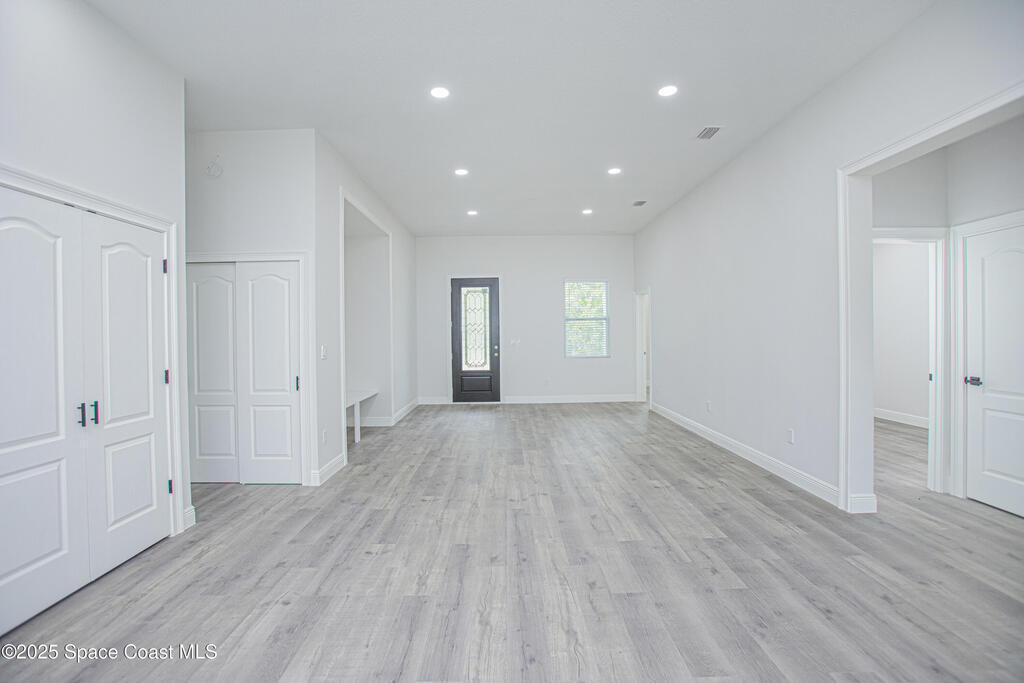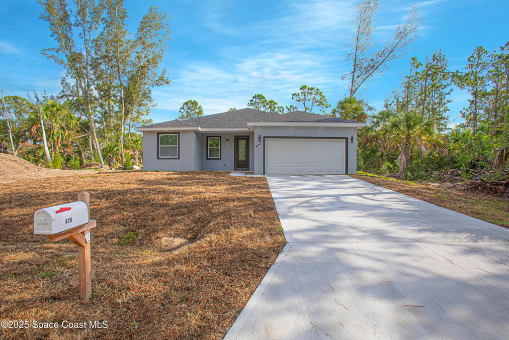 Brand New Single-Story Home in an Oversized Lot and NO HOA! Move-in Ready with numerous Upgrades, this gorgeous home offers 4 bedrooms and 2 bathrooms, complete with stylish vinyl flooring (no carpet!), a stunning dream kitchen with quartz countertops, stainless steel appliances, a large island, perfect for entertaining, recessed lighting, and ample storage. The spacious primary bedroom features a luxurious ensuite bath with double vanities, a walk-in shower with glass doors, and sleek tile finishes. Enjoy a generous backyard perfect for relaxing with nature views or hosting BBQs. Conveniently located in SW Palm Bay, just minutes from Fred Poppe Regional Park, Bayside Lakes shops and dining, Turkey Creek Sanctuary and with easy access to I-95 and the St. Johns Heritage Parkway. And for those beach days, Melbourne Beach is only about 4.8 miles away! Schedule your showing today!