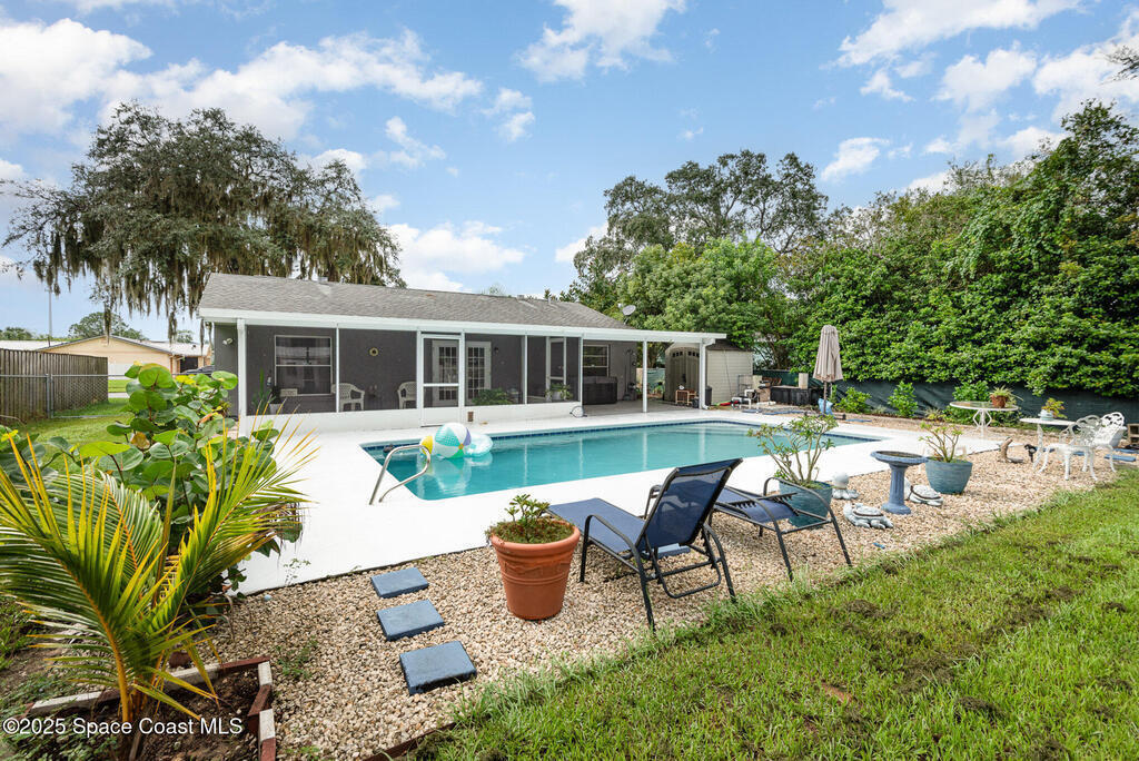 Fall in love with this cozy 2-bedroom, 2-bathroom home, filled with charm and character. Built in 1985 and offering 1,037 square feet of living space, this home features stainless steel appliances in the kitchen and a beautifully updated shower in the primary bathroom. Step outside to find a large screened back porch, perfect for entertaining friends and family. Cool off in the newer inviting saltwater pool or relax in the hot tub, or spend your weekends tinkering in the spacious workshop at the rear of the property. The home also includes hurricane shutters conveniently stored in the garage and home also features a brand new HVAC system.Currently rented until January 31, 2026, this property presents a fantastic opportunity for future homeowners or investors alike. Whether you're planning ahead for your dream home or seeking a solid investment, this one checks all the boxes!
