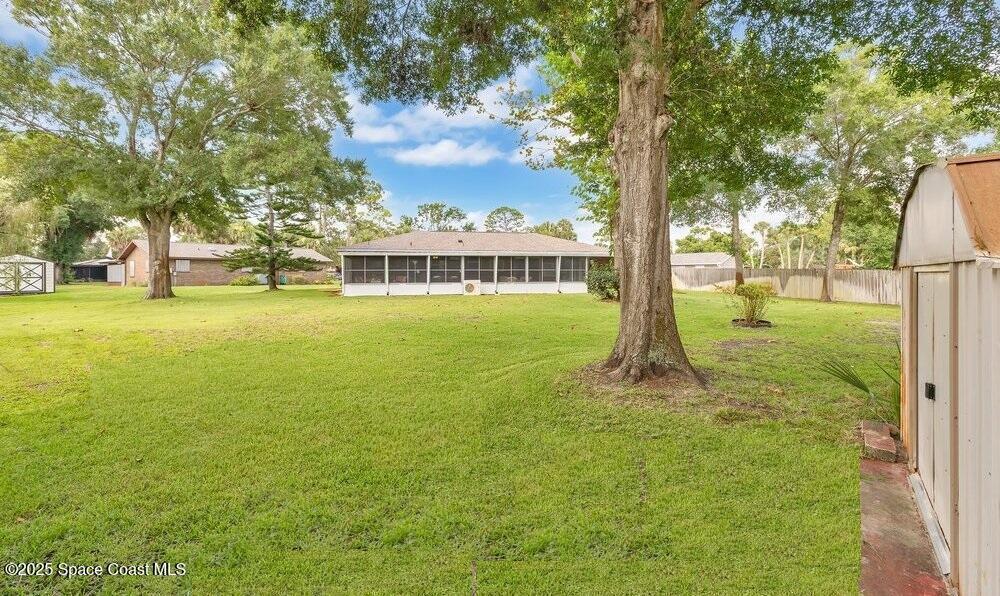 Great opportunity to own this beautiful 3BD/2BA home in quiet and highly desirable Westwoods community near Melbourne Village. Home features charming brick exterior and open split floor plan with hard flooring throughout. Enjoy entertaining family and friends in a spacious Florida Room with 675 square feet overlooking a large fenced yard with tranquil canal and shed for extra storage. Newer Roof replaced 2023 along with solar panels for efficient hot water heating. Extended driveway includes plenty of room for guests, RV parking and electric vehicle charging station. Great location conveniently located near shopping, restaurants and East Coast Beaches. 1-year HOME WARRANTY included. A must see!
