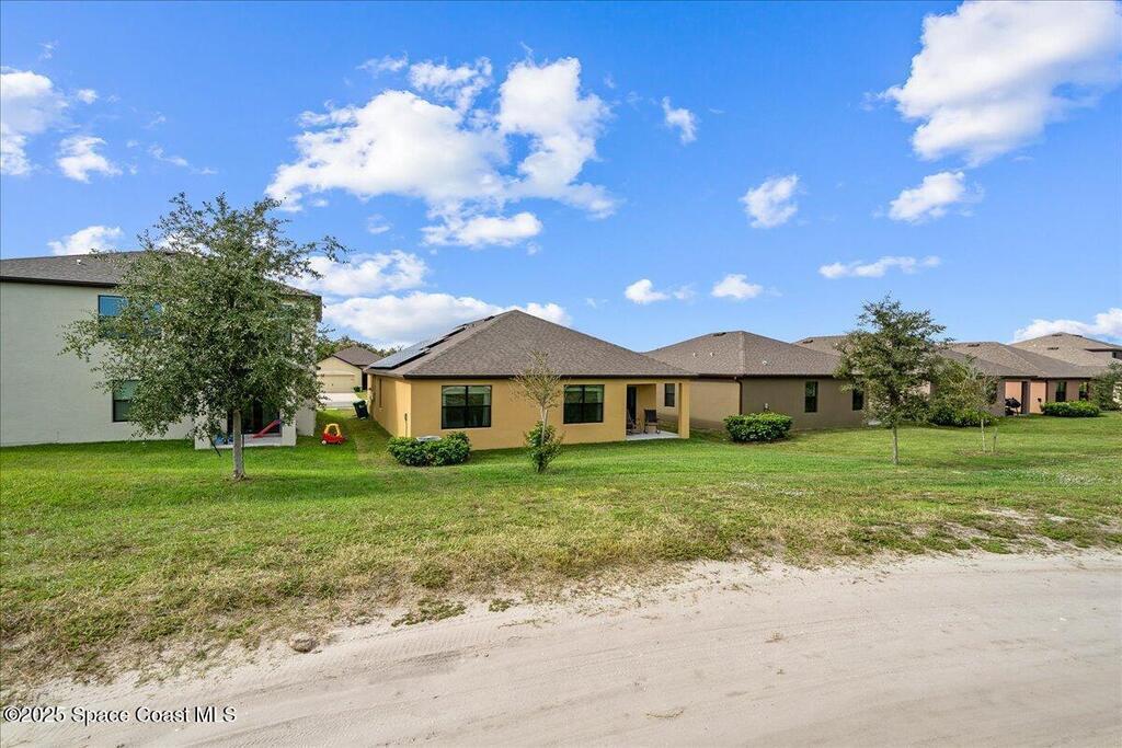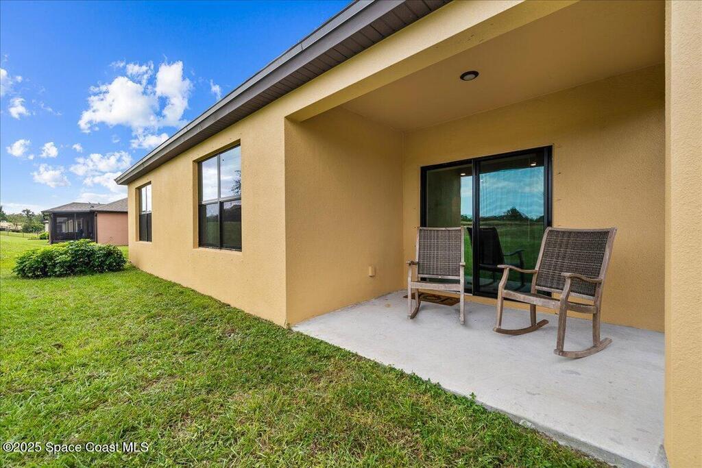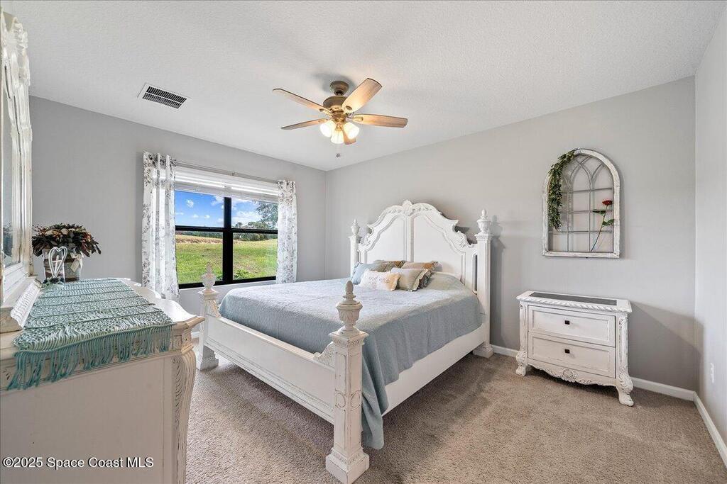 PAID OFF SOLAR PANELS! Indian River Preserve. An amazing, newer, golf course community with green side views and brand spanking new homes like this one! Built in 2020 with 4 true bedrooms, 2 generous bathrooms, and a view like no other facing the 2nd hole's green on a nice par 3. Tiled floors throughout the living areas, carpet in the bedrooms, eat-in kitchen with center island, and completely paid off solar panels that keep your FPL bill between $40-$50 a month on average. Practically brand new without the building time wait.