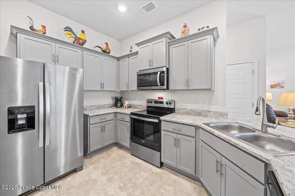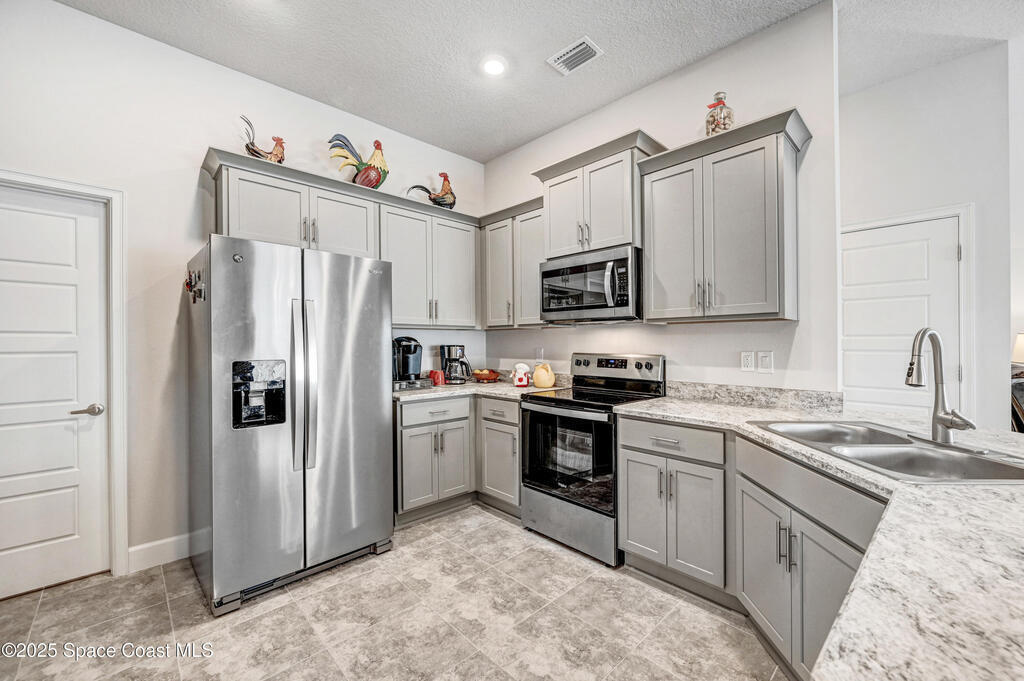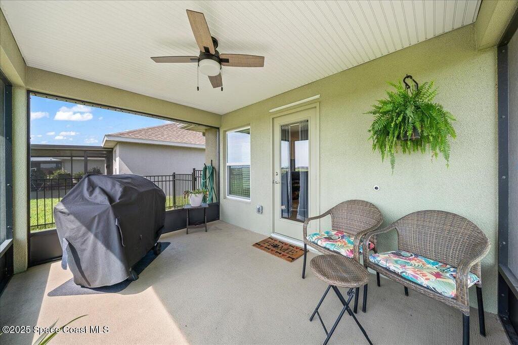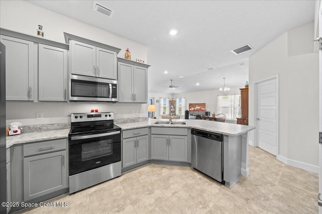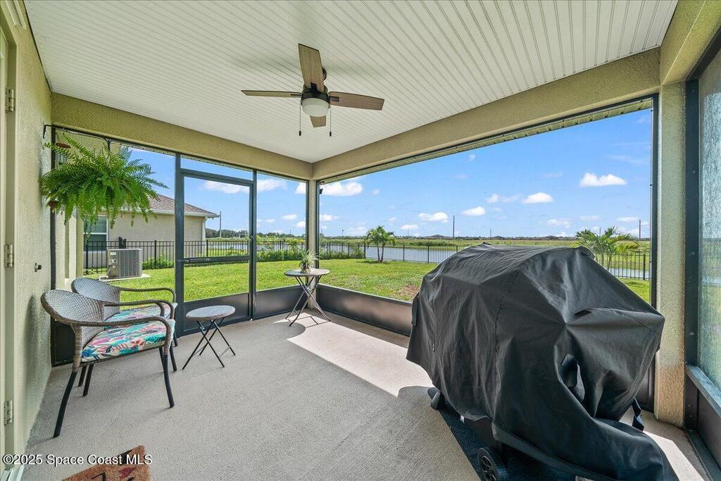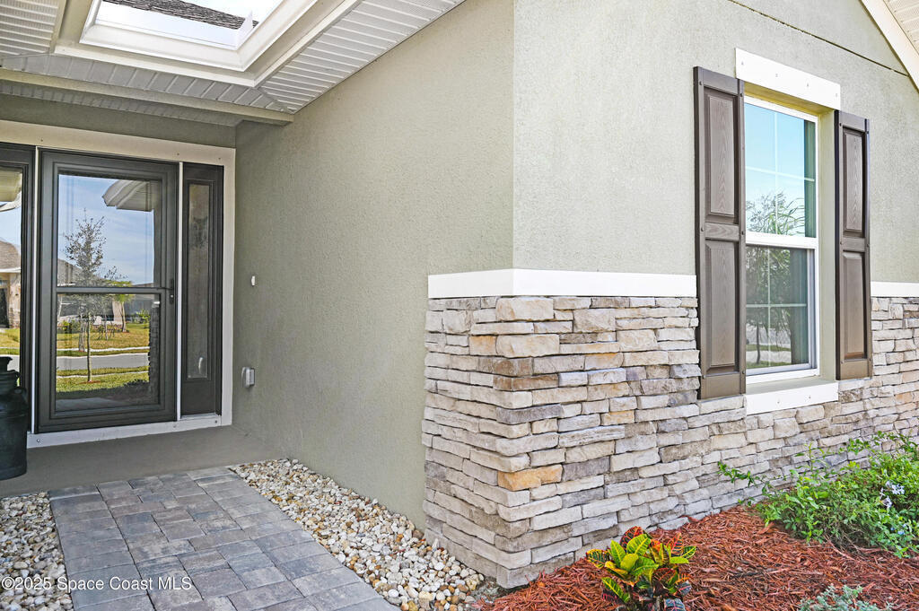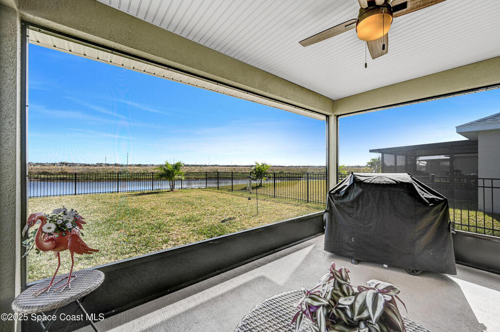 Welcome to The Courtyards at Waterstone! This beautiful Lakefront 2023 Built 3-bedroom, 2-bath home offers the perfect blend of comfort and style in a desirable gated community featuring a sparkling community pool, scenic surroundings, and low HOA fees. This well-maintained ''one owner'' home still shows like a model and is less than two years old. Recent upgrades include: Screened in Patio, Fenced in Yard, Ceiling Fans and window treatments. Step inside to an open floorplan with 10' vaulted ceilings, creating a bright and airy living space. Enjoy stunning sunrise views from your relaxing backyard, perfect for entertaining guests! The kitchen features designer all-wood coastal color cabinets with crown molding, Moen faucets, stainless steel appliances, recessed lighting and an oversized island ideal for meal prep and gatherings and is open to dining / family room. Retreat to the relaxing owners suite, complete with large walk-in closet and nice owners bathroom with 5' walk in shower.