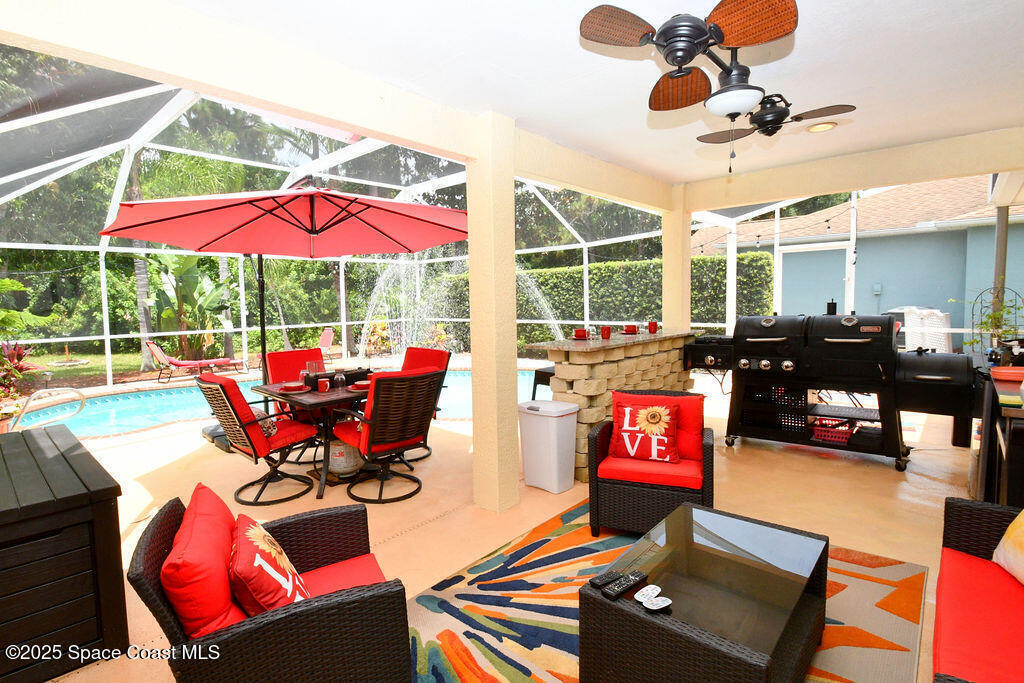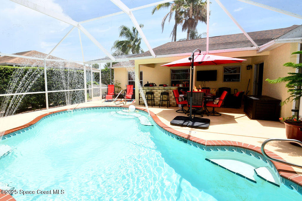 A beautifully updated 3-bed, 2-bath pool home in the desirable Springs of Suntree. Enjoy a private screened-in pool and a spacious backyard. The open floor plan features modern finishes, and the roof was replaced approx. 5 years ago. The garage is partially converted, offering flexible space for an office or a bonus room.. Please note that this may not be suitable for buyers who require full garage use. Located near top schools, shopping, and dining in Viera. Low HOA includes tennis courts and a clubhouse. Don't miss this move-in-ready Florida retreat!