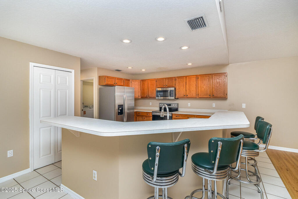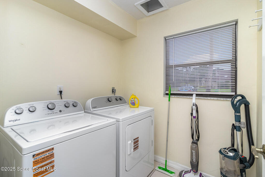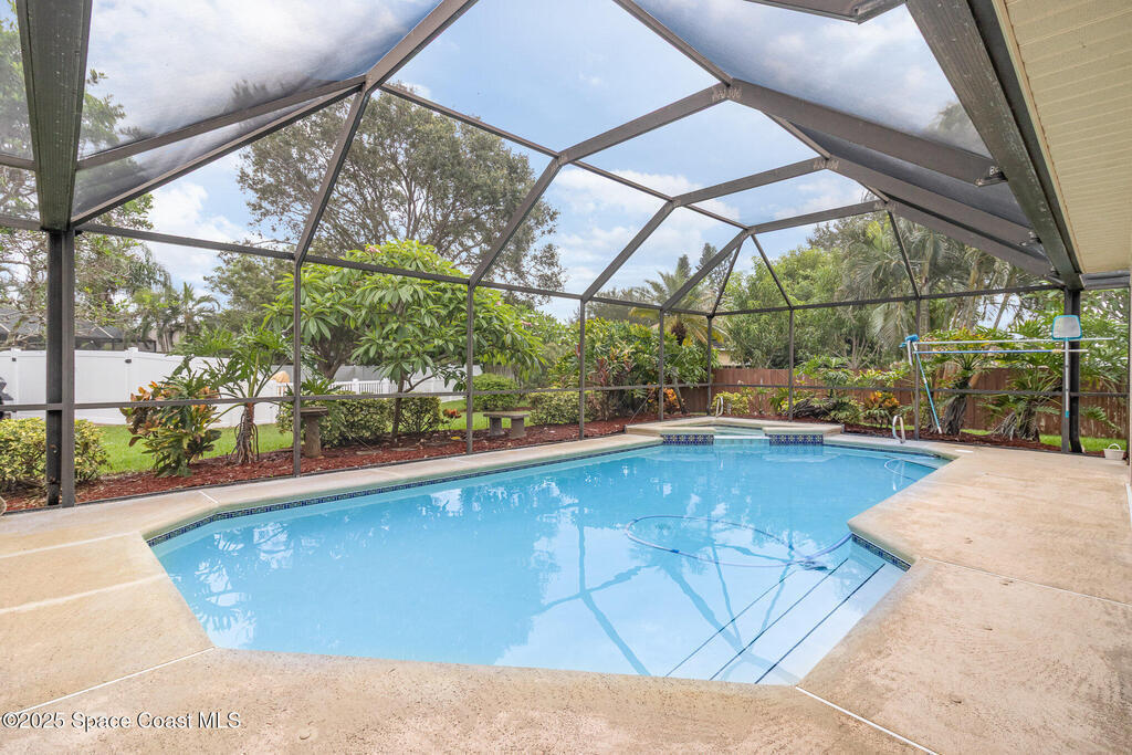 Price reduced on this inviting .34-acre pool home situated on a corner lot in the desirable location of South Merritt Island, features 4 bedrooms, 2 full baths and 1 half bath. The Primary bedroom is on the first floor with 2 large walk-in in closets, double vanities, separate garden tub and shower. There are 3 additional bedrooms (all with new carpeting), and a full bath on the second floor. The formal Living room and Dining room's high ceilings feature abundant natural light. The kitchen is home to an oversized Island with breakfast bar, large pantry, all new stainless-steel appliances, new washer and dryer and a large gathering room with an open concept for entertaining. French doors take you out to the wonderful screened oversized pool area perfect for relaxing after a long day's work. Conveniently located near Port Canaveral, Brevard beaches, Kennedy Space Center, Orlando International Airport. Catch a glimpse of rocket launches from the lanai of your new home
