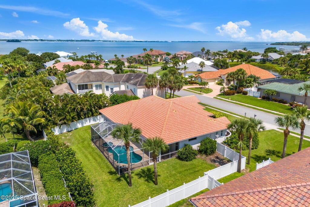 Wrapped in lush serenity and crowned with a brand-new 2025 roof, this dazzling Turtle Bay gem is anything but ordinary. Inside, vaulted ceilings & 24'' tile stretch across a fully reimagined 3-bedroom layout, where the expanded owner's suite boasts a closet so generous it borders on boutique. Exotic granite glimmers across the kitchen & baths, complementing custom glass-lit cabinetry, a wine cooler, gas stove, in-island prep sink & built-in wall oven. The gas-heated coquina rock fireplace brings texture & warmth, while the indulgent primary bath features a sculptural Greek soaking tub & a walk-in tiled glass shower. Outside, a screened lanai with cool decking frames the heated pool, hot tub & full pool bath w/ shower. Updates include a 2025 AC, 2024 pool pump, 2024 water heater & 2021 pool heater.