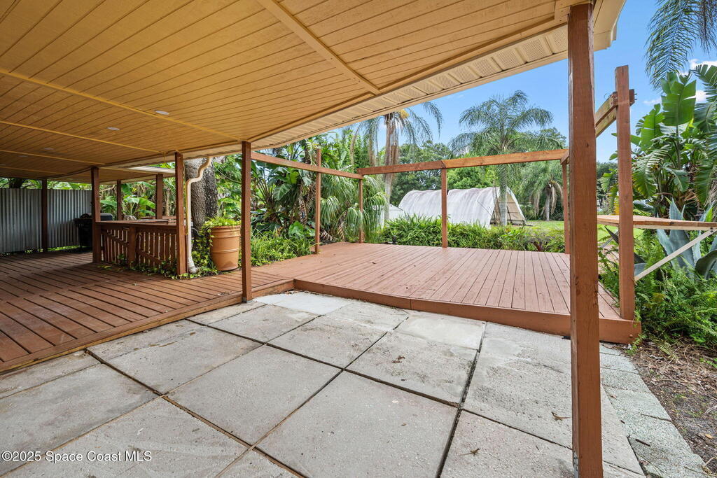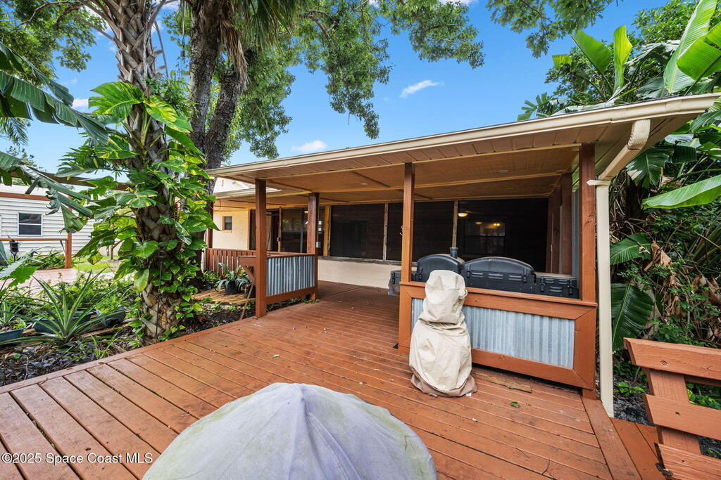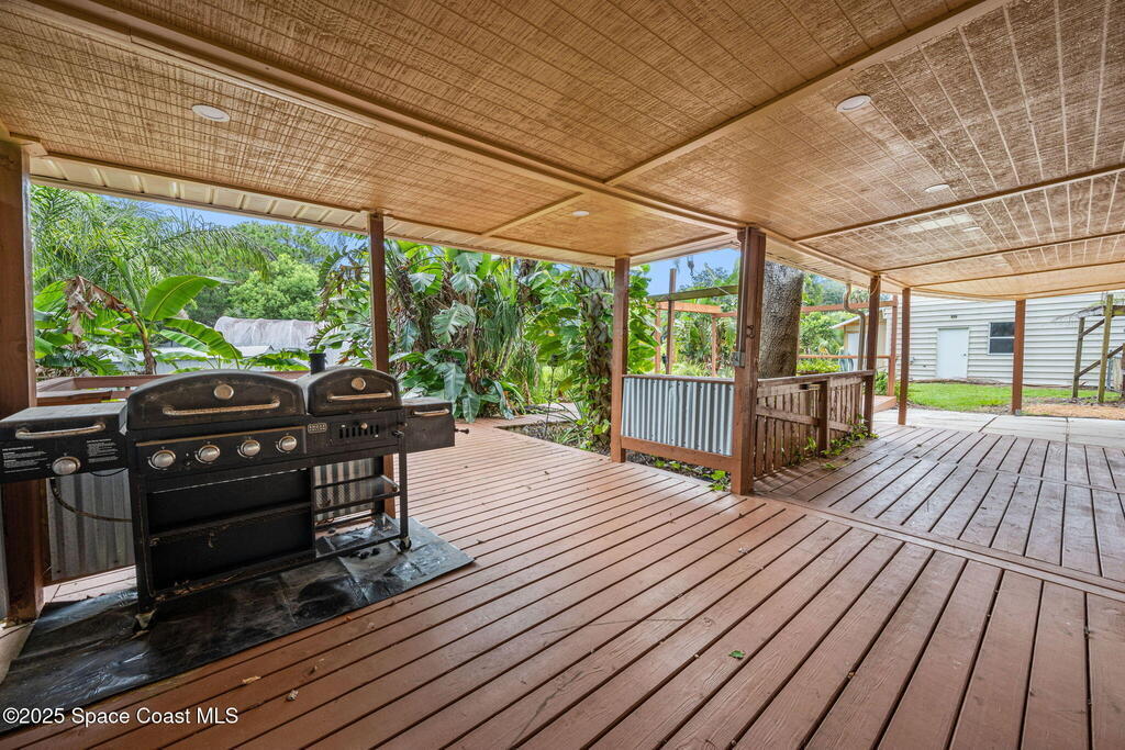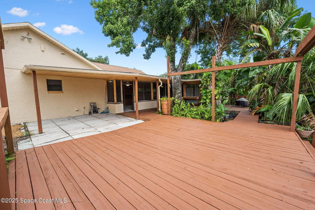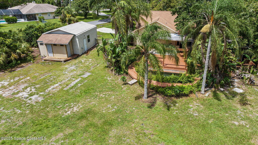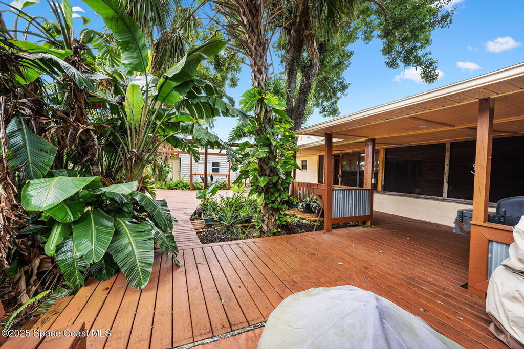 Welcome home to 4445 Seneca Ave., Cocoa, FL--your fantastic, private country retreat offering comfort, space, and endless possibilities! This inviting 3-bedroom, 2-bath home boasts nearly 2,000 square feet of thoughtfully designed living area, featuring tile and laminate flooring. The spacious floor plan flows effortlessly from room to room, providing a welcoming atmosphere perfect for gatherings or quiet evenings at home. Step outside and discover your own personal oasis--a massive screened and covered porch ideal for year-round entertaining or relaxing with your morning coffee. Just beyond, an expansive deck awaits your next BBQ or cozy firepit gathering, overlooking a tranquil koi pond that adds serenity to your outdoor living space. Hobbyists and homeowners with toys will appreciate the impressive detached utility building (20'x25') equipped with soaring 14-foot doors--perfect for boats, RVs, workshop space, or extra storage needs.