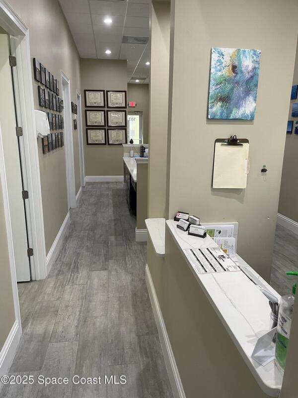 Medical/Professional/Retail office condominium Unit located in Brevard Medical City a upscale mixed use commercial/residential development located in the Suntree/Viera area of Brevard County, Florida. The main entrance has 35-foot Royal Palms lining the main entrance, a 6 1/2 acre Lake, a lighted jogging/walking sidewalk around the lake, charging stations for electric cars, three color LED signs along Wickham Road for business advertising. Four entrance points to the Property. The combination of senior housing, health care, and professional businesses already located here will complement your business. 6-Exams/Offices, Private Office, 2 Bath, Reception Ck in/Ck Out, Waiting Room, Work Area, Break Room, 2 Storage Closets. Inquire about Deed Restrictions. Available for Sale - Owner Financing.