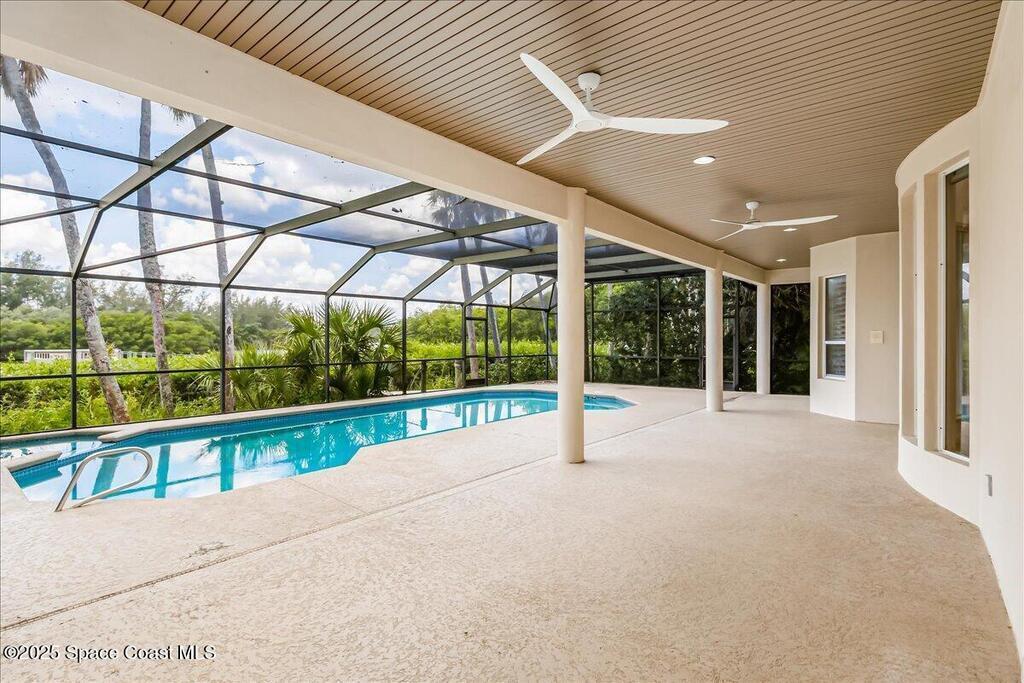 NEW PRICE! Stunning riverfront estate-style pool home in the prestigious, gated River Oaks neighborhood at Aquarina Beach & Country Club. This two-story home features a main‑floor primary suite and pool bath, plus three bedrooms and a full bath upstairs. The open-concept living area boasts coffered ceilings, and the kitchen--complete with island, wet bar, corner pantry, and breakfast nook--overlooks the pool and river. Upstairs, a balcony offers serene views of the river and preserve. Outdoors, enjoy a screened pool and spa, plus a private dock on the Indian River Lagoon for wildlife-watching, kayaking, or canoeing. Additional perks include an oversized 3-car garage, paver driveway, and a tile roof (replaced in 2022). Aquarina offers resort-style amenities: ocean access, clubhouse with restrooms, golf course, tennis club, gym, river pier with dock and boat launch, plus an on-site restaurant. This spectacular pool home is nestled in one of Melbourne Beach's most sought-after communities.