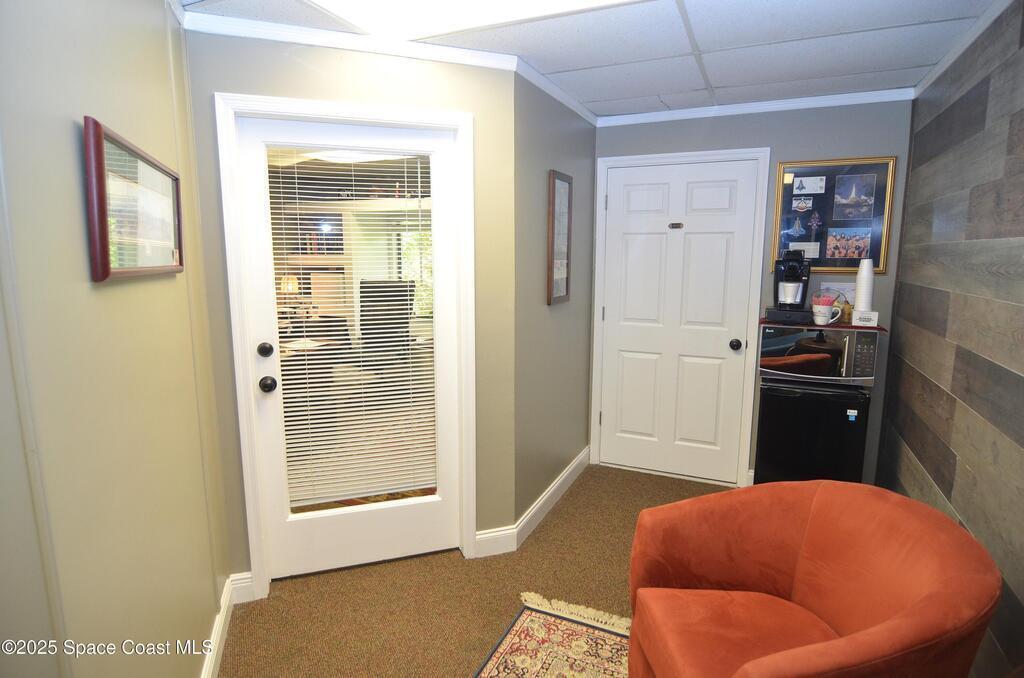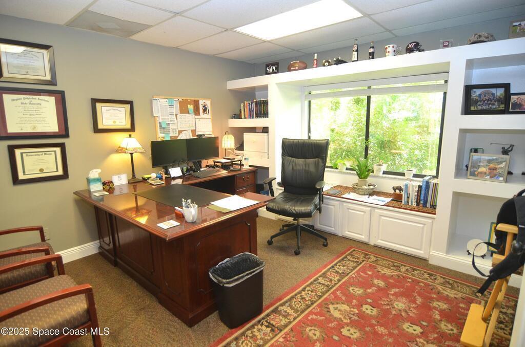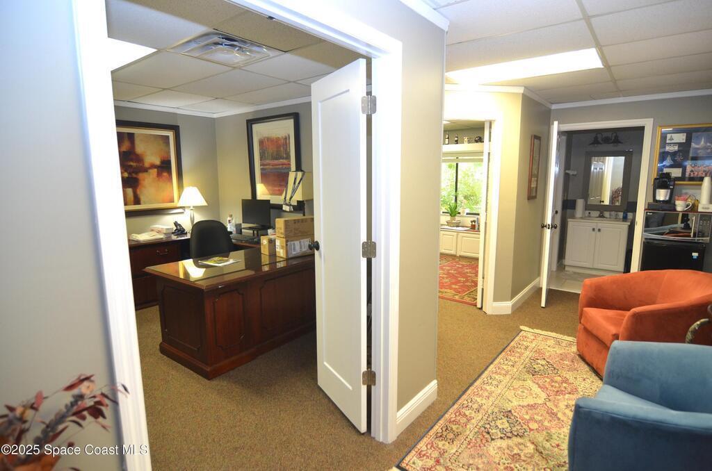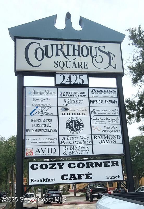 Welcome to Courthouse Square! Prime location in Central Merritt Island. 581 sq ft rentable area with private office space on the 2nd floor with a private bathroom. Exterior window which allows natural light, tastefully decorated, electric and water included. Building has an elevator, lobby, and plenty of parking. Roadside and building signage available for purchase