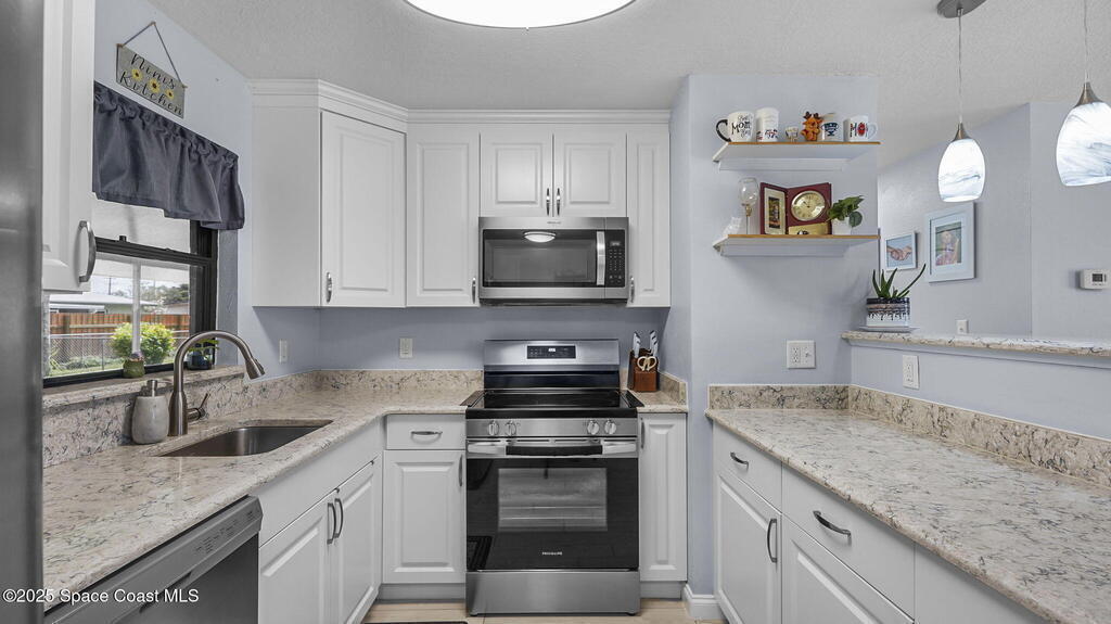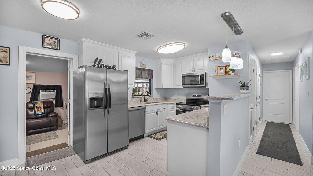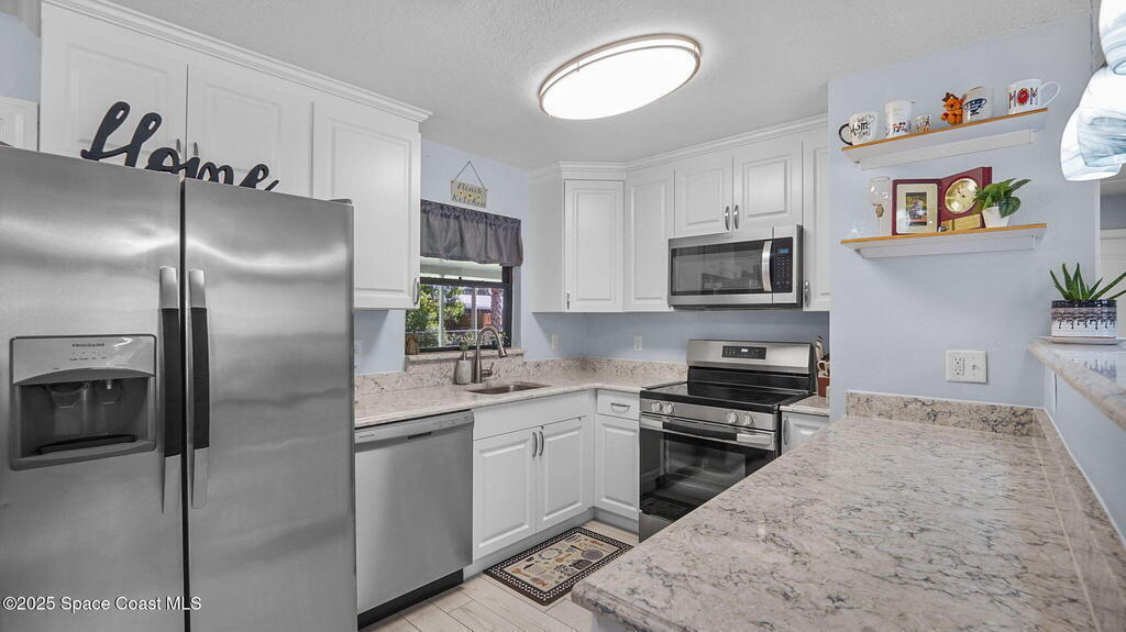 There's No Place Like Home! And this redesigned, concrete block home now has a modern open great room concept! This light & bright layout features a spacious kitchen with white shaker cabinets w/soft close drawers, granite counters, stainless appliances & pantry. The great room flows seamlessly into a dining & living area with updated lighting highlighted by vaulted ceiling & new plank tile flooring throughout. Primary suite includes a walk-in closet and updated Jack n Jill bathroom. Bonus room is perfect office, sunroom or reading nook with doors to patio & backyard. Interior laundry room with washer/dryer included. Step outside to the oversized 25x10 screened patio--ideal for entertaining or relaxing. Fully fenced backyard with room for a pool. Plus 2 sheds. Major components replaced/remodeled 2019 - Roof, HVAC, water heater, elec panel, kitchen & bathrooms. Can be purchased fully furnished - great for seasonal use or short term rental! No HOA!! Close to major roadways & shopping.