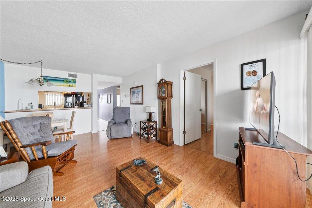 Welcome to this DIRECT Indian River 2 bedroom, 2 bath, move in ready condo in fast growing Titusville, FL! With gorgeous views of the Intracoastal and a front row seat to rocket launches, this 3rd floor unit has been lovingly maintained. The galley style kitchen has been updated with beautiful wood cabinetry and countertops and has ample counter space for meal prep. The living room/dining room combo has newer laminate wood flooring and sliders that exit to the lovely sunroom. The screened exterior sliders can be closed to be cooled by the AC or opened to allow for the nice summer breezes. The slider is also equipped with an electric shutter for storm protection while the other windows have roll down manual shutters making storm prep a breeze! The primary bedroom has a slider that leads to the sunroom as well as its own full bath. Pelican Point HOA includes a community heated pool with tiki area, pickleball/tennis court, a clubhouse for activities and most expenses except electric!!!
