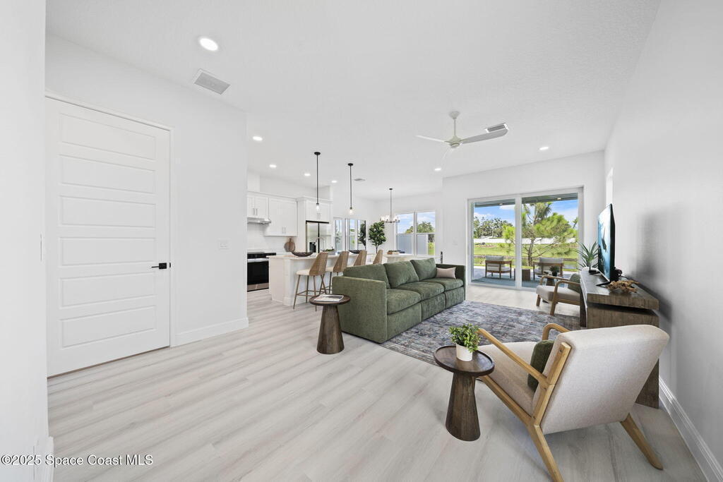 Corner Unit Model Townhome! Partially furnished, extended patio w/ view of pond and soon the pool. Solid concrete with 3 layers of sound barrier/insulation units between walls & floors, 10' ceilings on both floors, Impact windows & sliders, 8' six panel doors, quartz countertops, premium flooring and quality cabinetry. W/ 2000+ square feet of living space including 3 bedrooms, 2 full baths, main level 1/2 bath, upstairs flex space, large laundry, two car garage w/ 2 EV plugs, paver driveway, and huge both stories closet that can be upgraded to an elevator (upgrade).This gated community features low HOA dues that cover landscaping, exterior maintenance, ROOF, irrigation, trash, insurance, and management. An opportunity to lease 1 of the 6 boat slips at the community dock that features a kayak launch, fishing platform which is nestled behind a conservation space. The pool & cabana are in process and extensive landscaping planned. Located
