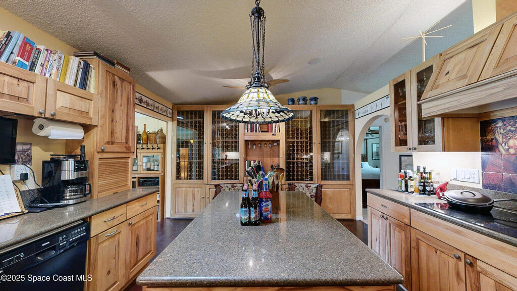 Not your ordinary home! So Unique, you don't want to miss it! Dreamy kitchen with wood floors, island, double ovens, cook top, glass front cabinets, granite tops and custom wine cabinet. Passthrough to the delightful dining room set up for the entertainer. Same room, but at the other end is the quiet reading area. All overlooking the lush, landscaped back yard! The formal Living room has a cozy fireplace. Split floor plan. Secondary bedrooms with wood floors & fans. Hall Bath with tub/shower and single sink. Wood floors in primary bedroom. The primary ensuite has double sinks, additional cabinets, jetted tub, walk in shower and walk in closet! Separate water closet and Exterior door. 700 sq ft OUTBUILDING. Fully equipped w/ BAR plus dining area. Dishwasher, refrigerator, sink and tile floors. OH, AND.... a WORKSHOP inside too for the handy person! Loaded with tool box/counters! Inside Laundry rm with sink. Roof is 2 years old. A/C is 6 years old. Septic emptied on regular basis.