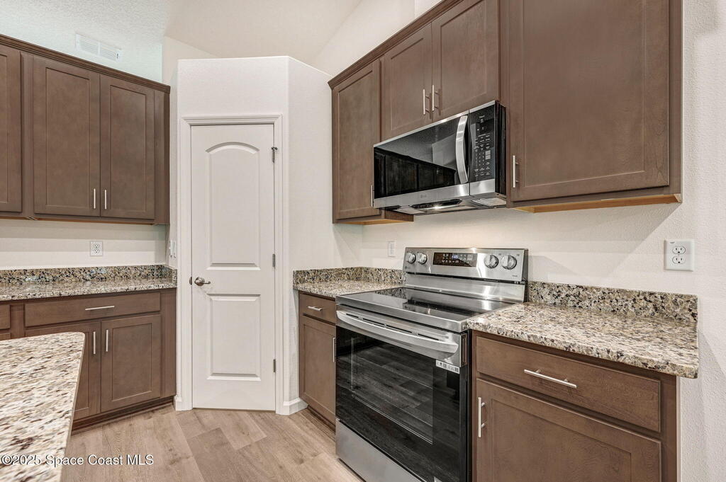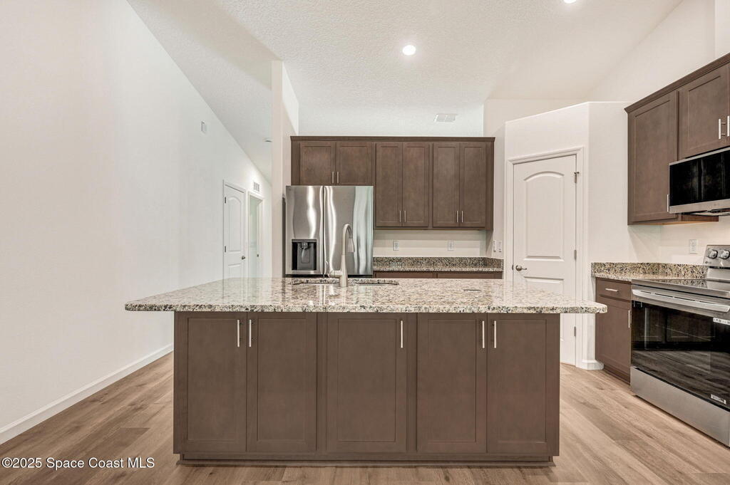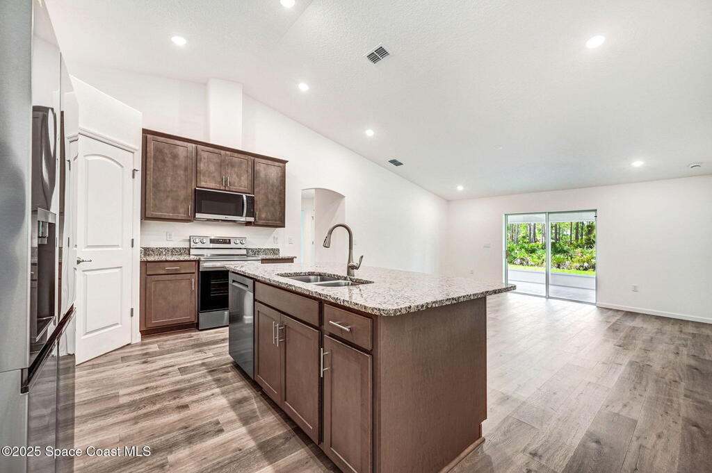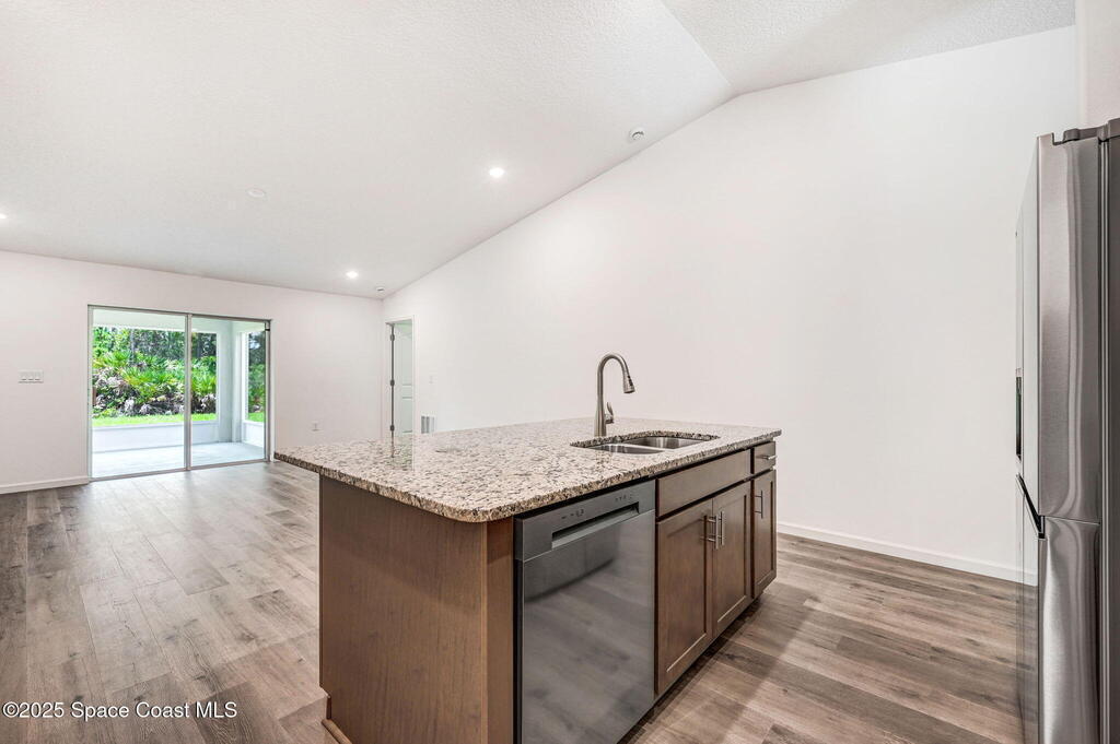 Beautiful Brand-New 4BR/3BA Family Home with Room for Everyone! This spacious home includes a 2-car garage & a large 20x12 trussed covered screened porch--perfect for playtime or relaxing outdoors. The open-concept island kitchen features granite countertops & ample cabinets with crown molding along with stainless appliances (including a 25 cu. ft. fridge) plus corner pantry. Durable Mohawk Revwood plank flooring flows throughout with tile in baths & laundry. The 4th bedroom has its own private bath with a 5' tile shower--great for guests or family! The primary suite offers a tray ceiling with dimmable lighting, a huge walk-in closet, and a tiled 5' shower. Inside laundry has 5'of overhead cabinets. 1-year Builder/10yr structural warranty. Extras: full water treatment system, attic stairs, floodlights, rounded drywall corners, and energy-saving R-38 insulation with radiant barrier. Limited-time: $15K Flex Funds or reduced 30-year rate with preferred lender for qualified buyers!