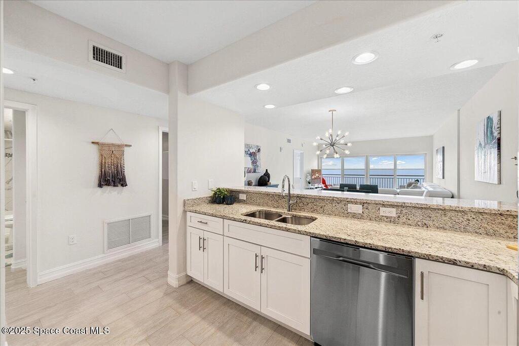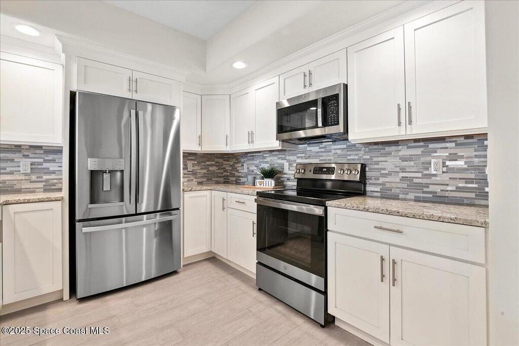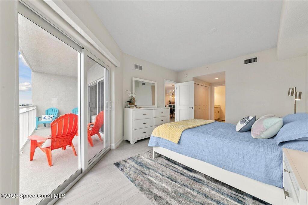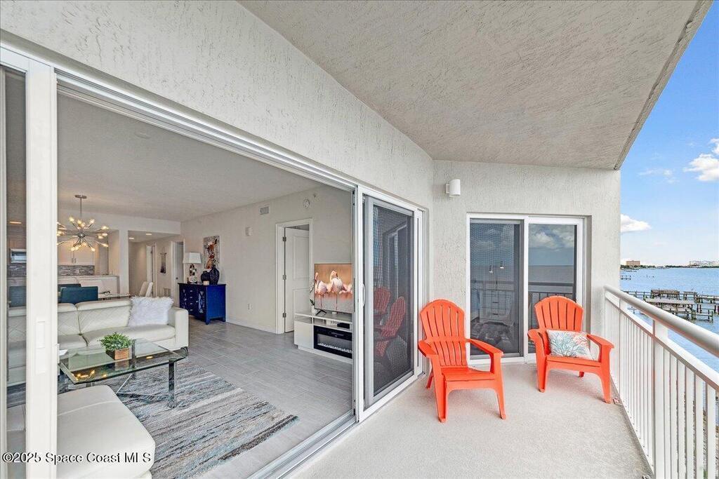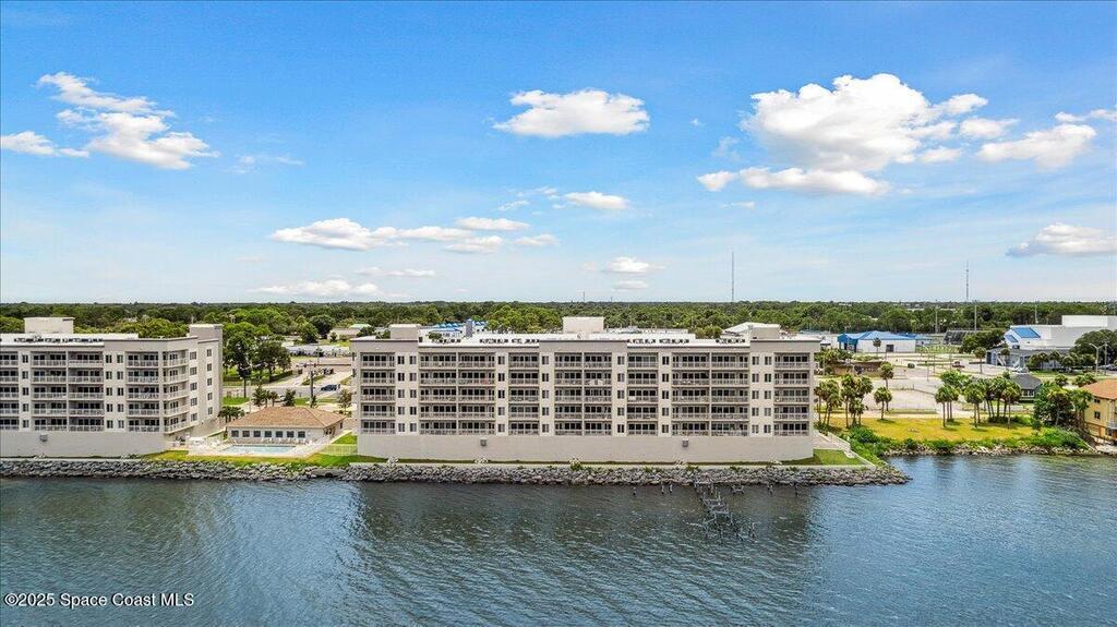 Waterfront living at its finest! Welcome to coastal luxury living in this beautifully designed condo nestled along the scenic Indian River in Titusville, FL! Built in 2023, this modern residence offers breathtaking water views, stylish finishes, & low-maintenance living-all year round & just minutes from Kennedy space Center, beaches, & marinas. Step inside to find a bright, open concept floor plan w/ high ceilings & abundant natural light. The contemporary kitchen features sleek shaker cabinetry, stainless steel appliances, granite countertops, tile backsplash and a bar height kitchen island perfect for entertaining. Light tile floors throughout enhances the coastal aesthetic & offers effortless upkeep. The primary suite offers private river views, a large walk-in closet, a spacious ensuite w/ double vanities & a walk-in tiled shower. Unlike others, this model has the primary suite RIVERSIDE w/ its own slider to the balcony, while the guest bedroom is located on the road side,