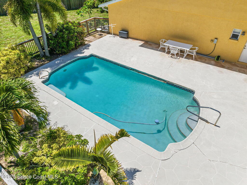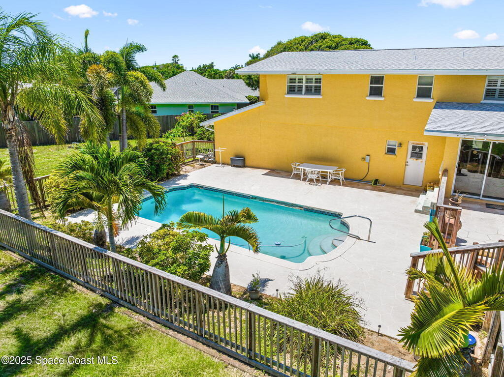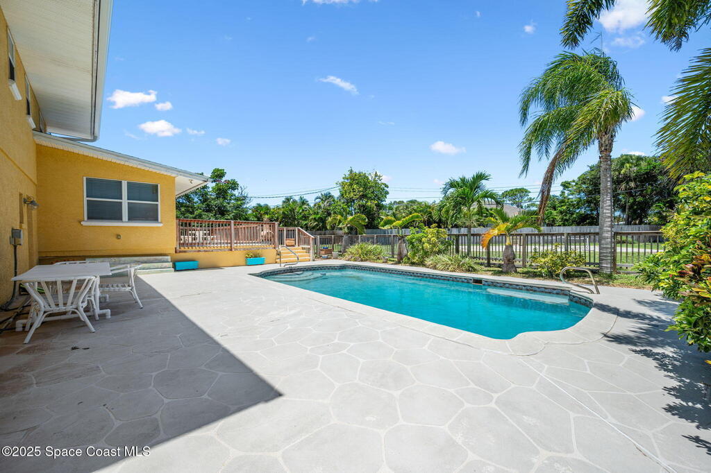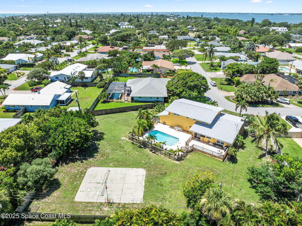 This incredible Melbourne Beach Pool Home on nearly half an acre of lush land is conveniently located near the beach, river, park, dining, shopping, and more. Renovated in 2006, this 4 bed, 2.5 bath property features a custom kitchen, cozy family room, and rear deck for hosting gatherings. The master bathroom boasts granite countertops, while the guest bathroom offers glass tile accents and hammered aluminum sinks. Hardwood floors, tile, and plush carpeting create a stylish atmosphere, with built-in desks and a murphy bed for extra guests. The outdoor area features a spacious swimming pool, electric set up for a hot tub, pickleball court, and mature fruit trees. Three car garage. This home is a perfect blend of luxury, comfort, and convenience in Melbourne Beach.. See Feature Page