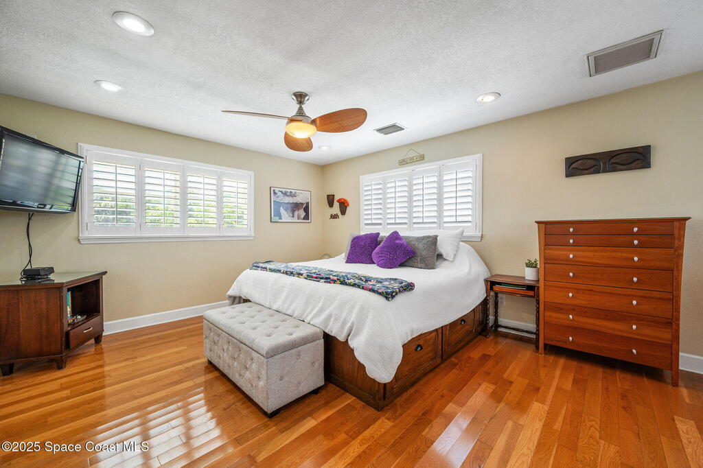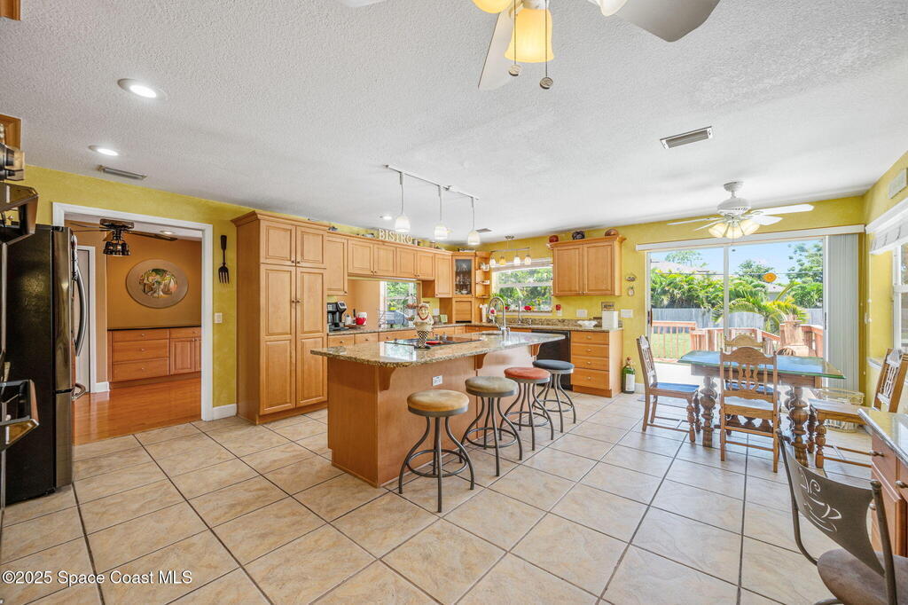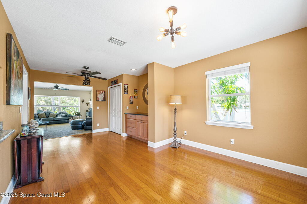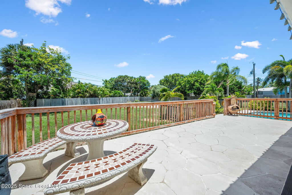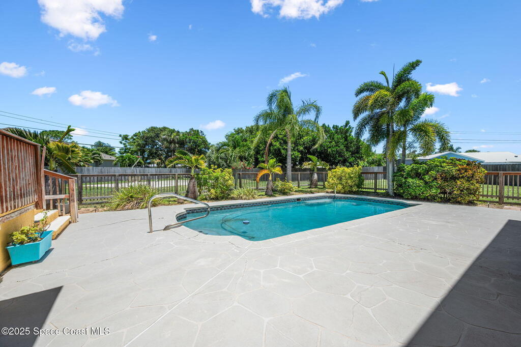 This incredible Melbourne Beach Pool Home on nearly half an acre of lush land is conveniently located near the beach, river, park, dining, shopping, and more. Renovated in 2006, this 4 bed, 2.5 bath property features a custom kitchen, cozy family room, and rear deck for hosting gatherings. The master bathroom boasts granite countertops, while the guest bathroom offers glass tile accents and hammered aluminum sinks. Hardwood floors, tile, and plush carpeting create a stylish atmosphere, with built-in desks and a murphy bed for extra guests. The outdoor area features a spacious swimming pool, electric set up for a hot tub, pickleball court, and mature fruit trees. Three car garage. This home is a perfect blend of luxury, comfort, and convenience in Melbourne Beach.. See Feature Page