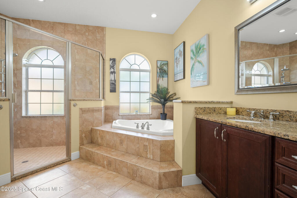 Breakfast Bar , Breakfast Nook , Built-in Features , Ceiling Fan(s) , Central Vacuum , Eat-in Kitchen , Entrance Foyer , His and Hers Closets , Jack and Jill Bath , Kitchen Island , Open Floorplan , Pantry , Primary Bathroom -Tub with Separate Shower , Primary Downstairs , Smart Thermostat , Split Bedrooms , Vaulted Ceiling(s) , Walk-In Closet(s) , Wet Bar