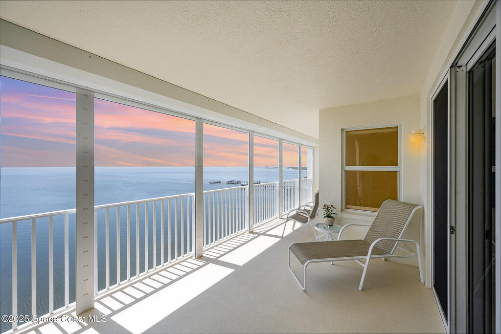 Florida SPACE COAST living at its finest! This condo sits in the PERFECT LOCATION has amazing riverfront views, in a private setting off main roads and within walking distance to downtown. This two bedroom two bath condo is truly turn key, This condo is professionaly decorated and comes FULLY FURNISHED, BUYERS CAN MOVE RIGHT IN! High end comforts in every room, newer appliances in kitchen and laundry rooms (2024), AC w/ infrared system (2024), silhouette shades in primary bedroom and living room adds elegance & privacy. Guest bedroom set up as an office but easily converts to a guest bedroom with modern built in Murphy Bed, spacious closets through out the unit for storage, separate laundry room with utility sink plus a private one car garage. Gated entrances, heated saltwater pool, hot tub, gym, dry sauna, tennis, and pickleball courts, clubhouse, private marina and social activities. Enjoy the next rocket launch from the BEST LOCATION your new condo