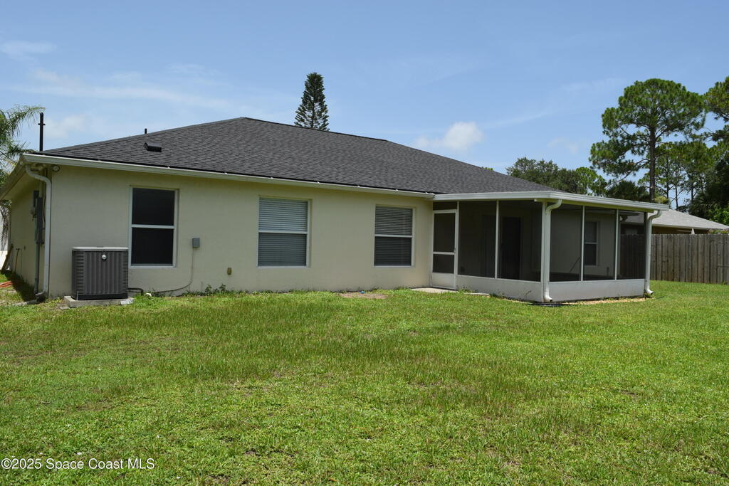 Great open floor plan in this 3 Bedroom, 2 Bath home in desirable NE Palm Bay. Separate Family and Living and Dining rooms. Eat in kitchen with island and breakfast bar.master suite boasts walk in closet. Master bath has separate shower with Jacuzzi tub. Inside Laundry(Washer and Dryer, 2nd Fridge not warranted) Screened in Patio with large backyard.2 car garage. Lawn service included in rent.Owner will consider pets on a case by case basis but absolutely no cats! Pet insurance will be required.