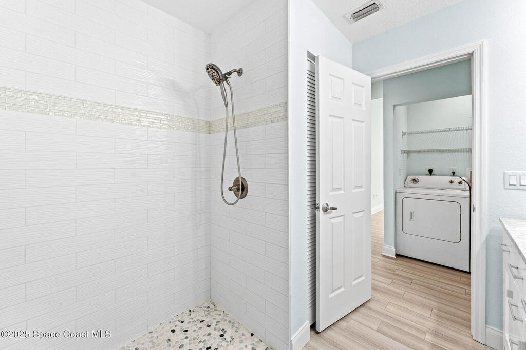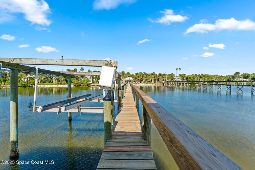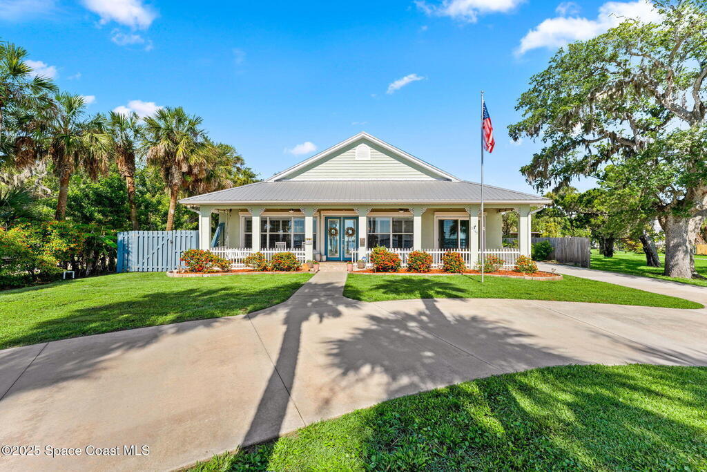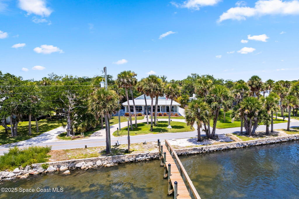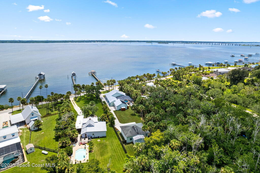 Paradise found on the Intracoastal Waterway! This extraordinary (handicap accessible) home checks all the boxes with a beautiful solar-heated pool (w/handicap lift), outside shower, poolside pergola with paver patio, expansive front porch with cedar ceiling and plantation shutters where you can soak up the river views featuring regular rocket launches and dolphins. The front-of-house primary offers beautiful river views, built-in California Closets(r), dual walk-in closets and a spa-like ensuite bath with soaking tub, larger shower and 2 sink vanity. The property features an attached 2 car attached garage, detached greenhouse and luxurious detached newer 885 SF guest house w/kitchen, screened sitting porch (with river views), RV power outlet and additional parking in the back. The riverside has a newer dock w/boat lift and TIKI hut. Even the dining area and beautiful quartz kitchen offers river views. This home is extraordinary on a larger lot on sought after Indian River Drive