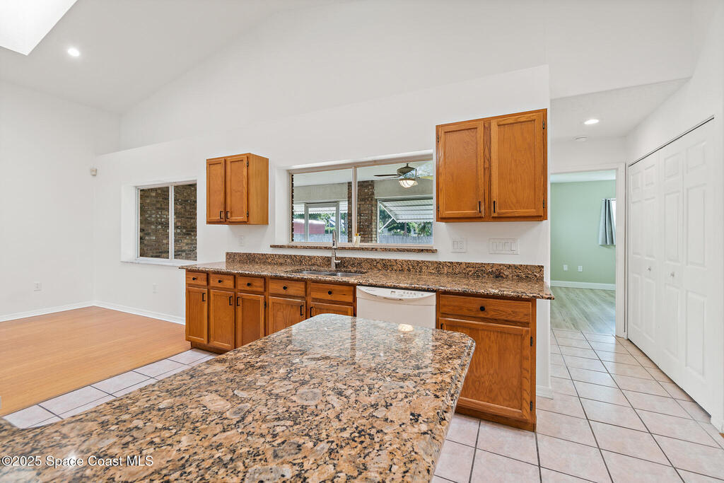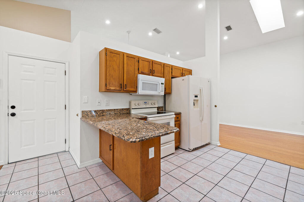 Welcome to this meticulously maintained 4-bedroom, 2-bath home with NO HOA and exceptional pride of ownership! Featuring a light-filled kitchen with granite countertops, wood cabinetry, and newer appliances. Both bathrooms are tastefully renovated with granite vanities and tiled showers. Enjoy two spacious living areas, perfect for entertaining or relaxing with family. Skylights and new LED recessed lighting brighten every corner, complemented by brand new carpet and luxury vinyl plank flooring. Major upgrades include a new AC unit (2020) and impact-rated windows (2018). Step outside to a screened-in porch overlooking a large backyard, ideal for BBQs, hobbies, or adding a pool. No neighbor on one side, thanks to an adjacent empty lot, offering added privacy. Oversized 2-car garage provides ample storage. Conveniently located near I-95 and the Beachline for quick access to beaches, the airport, and Orlando attractions. Move-in ready and packed with value!