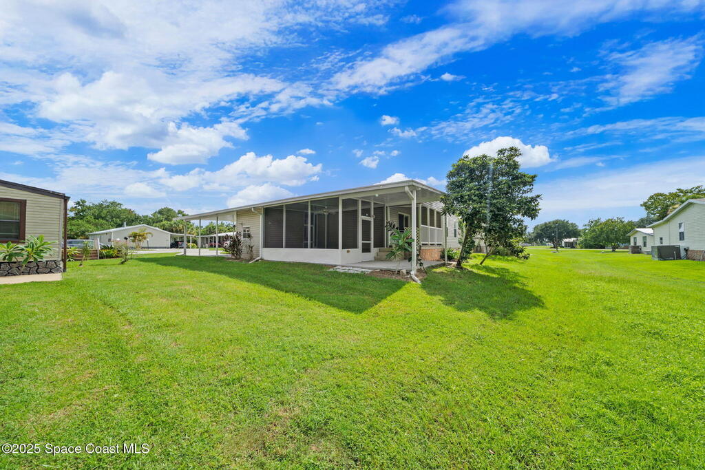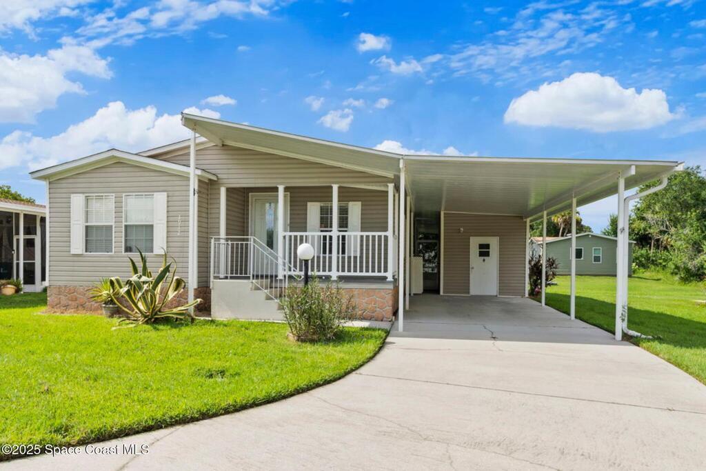 Welcome to this bright and airy 3-bedroom, 2-bath home in Cedar Lakes Mobile Home Park Co-Op! Located in a peaceful, all-ages, resident-owned community in West Cocoa, this well-maintained home offers comfort, convenience, and value. The split-bedroom layout features open living spaces, a spacious kitchen, and a screened porch ideal for relaxing. The primary suite includes a walk-in closet, soaking tub, separate shower, and dual vanities. Enjoy updates including roof (2018), A/C (2019) with new capacitor and blower motor (2025), water heater (2021), washer & dryer (2022), dishwasher and kitchen faucet (2025), and electrical panel with surge protector (2024). Community amenities include a heated pool, clubhouse, shuffleboard, fishing lake, and secured RV/boat storage. The low HOA covers lawn care, cable, internet, and pest control--relaxed Florida living at an unbeatable value!
