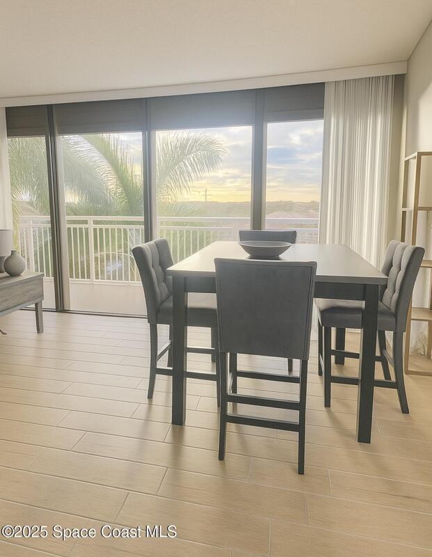 Priced to sell! Listed 50K below-Bright and breezy furnished corner unit at The Villager offers the best of coastal living with panoramic ocean views, a 400 sq. ft. wraparound balcony, the best view of rocket launches, sunrises, and sunsets. Fully turnkey this spacious 2/2 condo w/enclosed garage, open-concept, large primary suite, walk-in closet and large soaking tub. New Stainless and granite kitchen Guest bedroom w/sweeping ocean views. Full-time residence or an stress-free getaway, this unit delivers effortless luxury and convenience. Pet-friendly oceanfront community with resort-style amenities, includes largest pool on the beach, outdoor grills, party room w/ kitchen, pool table Over $1 million in Reserves, New Roof 2024, this well-maintained building offers peace of mind and long-term stability. HOA fee covers WATER, cable, internet, and building insurance, making ownership simple and predictable. Just steps from Publix and local shops. Maintenance free living. Bring Offers!