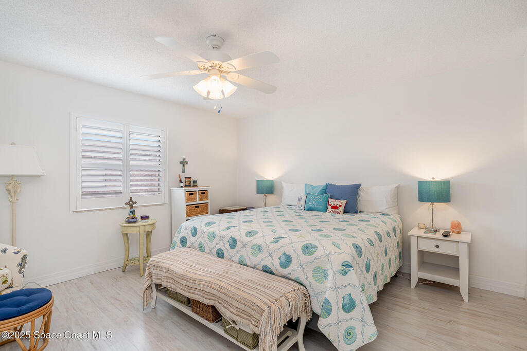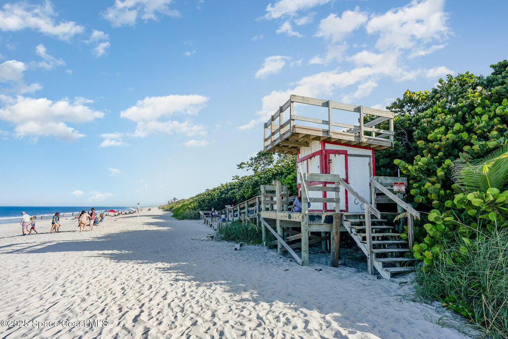 Just a short stroll from the pristine beaches of Paradise Park, this spacious 2-bedroom, 2.5-bath condo offers the perfect blend of coastal charm and modern comfort. Nestled in the quiet, well-maintained community of Paradise Villas, enjoy maintenance-free and affordable living in a serene setting.Step inside to discover tasteful updates throughout, including luxury vinyl plank flooring, a stylish kitchen with white cabinetry, granite countertops, and a sleek tile backsplash. The main level features a generous living and dining area, perfect for entertaining, along with a beautifully updated half bath.Upstairs, the primary suite is a private retreat with an updated ensuite bath and walk-in shower. The second bedroom also features its own updated bathroom with a tub--ideal for guests or family.Enjoy ocean breezes, rocket launches, and gorgeous sunsets from your private balcony. Community amenities include a heated pool, clubhouse with sauna, outdoor grill area, and tennis.