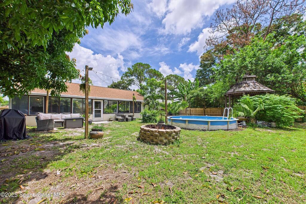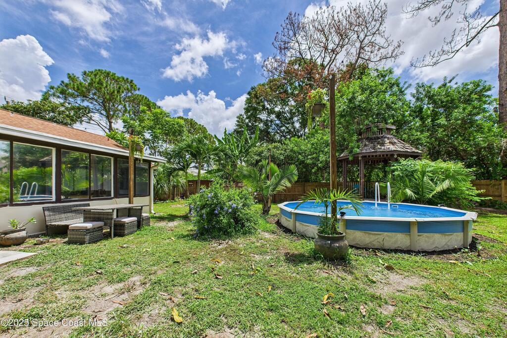Buyer Incentive! The sellers are offering a $5,000 credit that you can use toward closing costs, appliances, repairs, or even a rate buy-down! Welcome to your tropical oasis on a spacious 0.35-acre lot in NW Palm Bay! This 3-bedroom, 2-bath home is packed with charm. Enjoy a 15ft around by 5ft deep 5,000-gallon chlorine pool half in-ground, half above for year-round enjoyment, featuring a brand new pump and filter. The lush backyard is a fruit lover's dream, with mature mango, orange, and loquat trees. Inside, the master bath has been remodeled, the roof was replaced in 2019, and the AC is from 2023. Located just 3 minutes from Heritage Parkway with easy access to shopping, highways, and Orlando. Peaceful, private, and move-in ready!