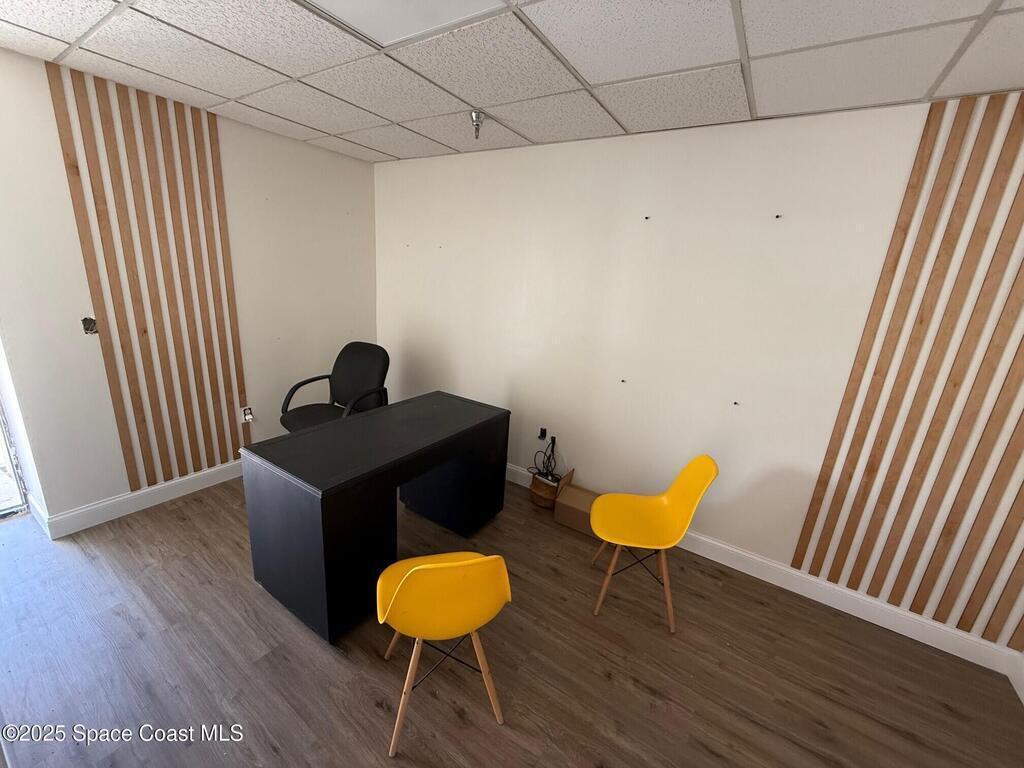 Excellent opportunity to lease a 7,500 SF warehouse in northeast Palm Bay! Interior is est. 2,500 SF office + 5,000 SF warehouse. There is a bonus upstairs mezzanine of approximately 2,500 SF. Unit is 100% fire sprinklered. Warehouse has concrete flooring and est. 17' 6'' - 20' clear height throughout. There is one 16' wide x 10' tall +/- door + two 10' x 10' +/- grade level doors. Two deep well docks. Lease includes a paved/fenced yard adjacent to the premises. Utilities include City Water/Sewer and 3-phase 480v 400amp FPL electric. Strategically positioned just off of US1 approximately halfway between Palm Bay Road and US 192, both of which are direct I-95 connectors. Nearby employers include Raytheon, L3Harris and Northrop Grumman to name a few. Make this the future home for your business today!