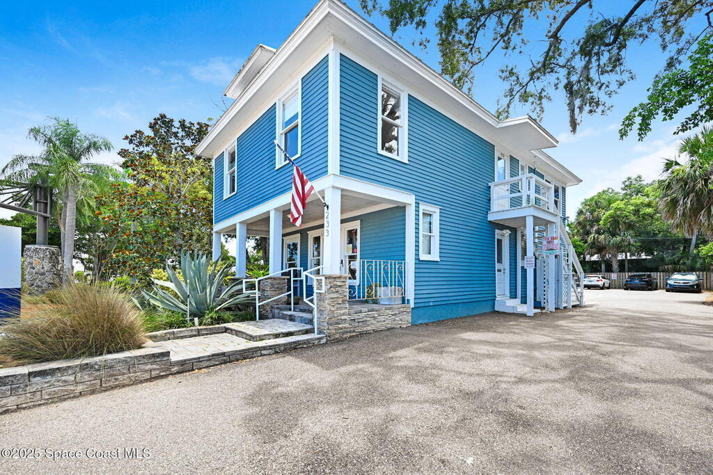 Own an exceptionally charming circa 1925 commercial bldg @ the Western Gateway to Historic Downtown Melbourne. Zoned C-1, live/work or mixed-use flexibility, this timeless property blends classic architectural character w/modern updates: (3) separate power meters for flexible tenant configurations, New electrical panels (2022), Upgraded upstairs plumbing (2023), Resurfaced parking lot & ramp (2019). Step inside & find beautifully preserved original hardwood floors, a welcoming fireplace, and 2 mini kitchenettes--one per level. The layout supports a wide range of uses, from boutique retail or professional office space to a creative studio or live/work setup. This two-story (no elevator) offers private rear parking, 8 spaces, a rare find in Downtown Melbourne, and a handicap-accessible ramp from the rear lot (easy entry). Lovingly maintained, this property preserves the warmth, character, and craftsmanship of the 1920s while offering the efficiency & convenience modern businesses expect.