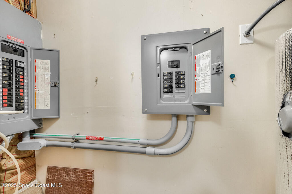 Step into potential at this charming 3-bedroom, 2-bath Merritt Island home, ideally located just minutes from the water. With a newer roof (2018), updated electrical panel, full solar inverter system, reverse osmosis water system, and accordion hurricane shutters, this property offers comfort, efficiency, and off-grid potential. Inside, enjoy an open living space that flows into a large flex room and indoor laundry area--perfect for added functionality. The fully fenced backyard features multiple sheds for storage and plenty of space to garden or play. Just a short walk to both the elementary and high schools, this home is filled with opportunity in a prime location.
