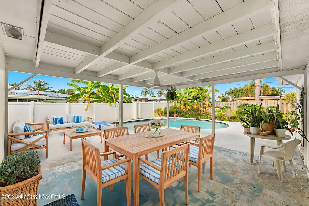Completely updated 3BR/2BA pool home on an oversized corner lot in one of Satellite Beach's most desirable neighborhoods--just a short walk to Pelican Beach, Gleason Park, and top-rated schools.This solid block home checks all the major boxes right up front, featuring STRUCTURAL REINFORCEMENT (FOUR CORNERS), NEW PLUMBING, NEW ELECTRICAL PANEL, ROOF (2018), and a RESURFACED POOL WITH UPDATED TILE. These high-value improvements deliver peace of mind, longevity, and a strong investment foundation before you even step inside.Indoors, a stunning brand-new kitchen showcases Reform CPH soft-close cabinetry, premium KitchenAid appliances, and beautifully refinished original terrazzo floors that bring timeless mid-century charm back to life. Spacious bedrooms include cedar-lined walk-in closets and custom blackout shades.