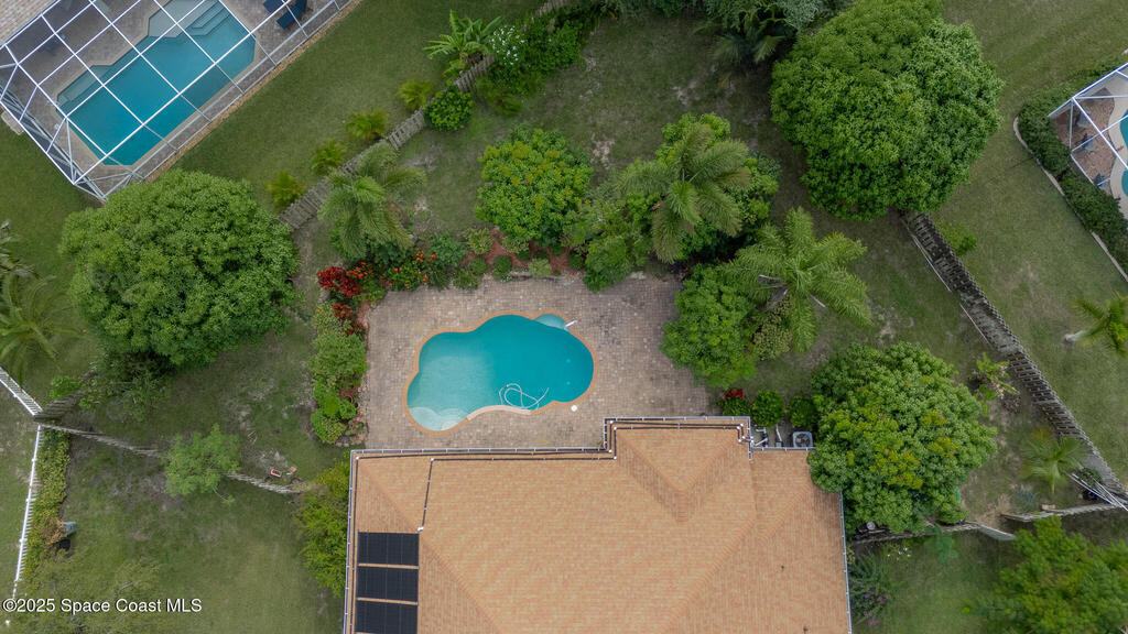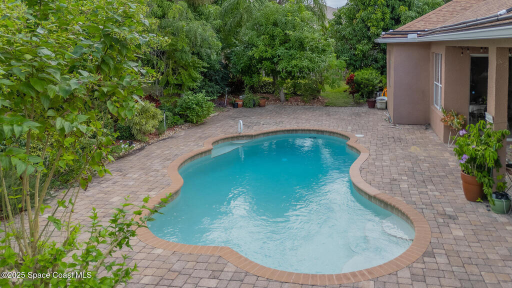 This spacious home is perched on a hilltop in the picturesque neighborhood of River Grove lined with magnolia trees and graced by a serene lake where you can watch the ducks. Drive up the paver driveway to the manicured landscaping with a side-entry garage. As you step inside, you are greeted by views of lush gardens that wrap around the sparkling inground pool. A peaceful escape surrounded by variations of mango trees, fresh vegetables, flowers, lychee, palms and poinciana, that you can enjoy while sitting on the back covered patio or lounging in the pool.The spacious primary bedroom will accommodate a large bedroom set and has access to the covered porch through a door. One of the bedrooms features a private en-suite bath and walk-in closet, perfect for guests or multi-generational living. Kitchen provides ample storage space, pantry, stainless steel appliances and granite counter tops. Tile and wood flooring throughout. Sit in the breakfast nook and enjoy the sparkle of the