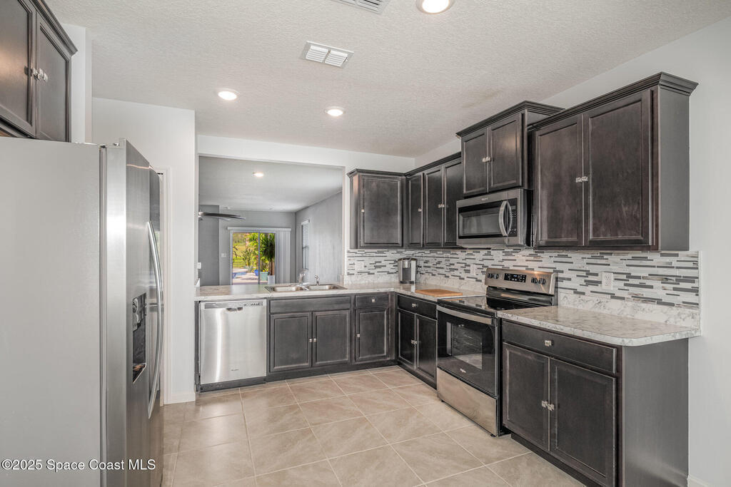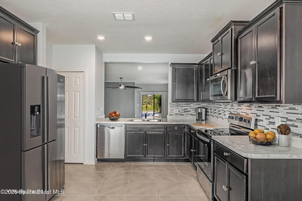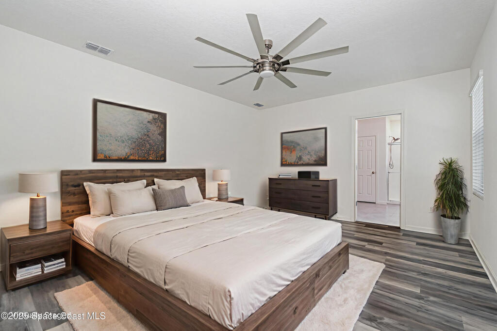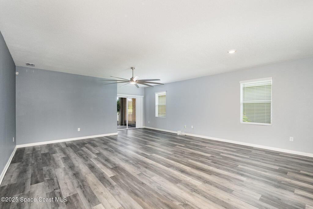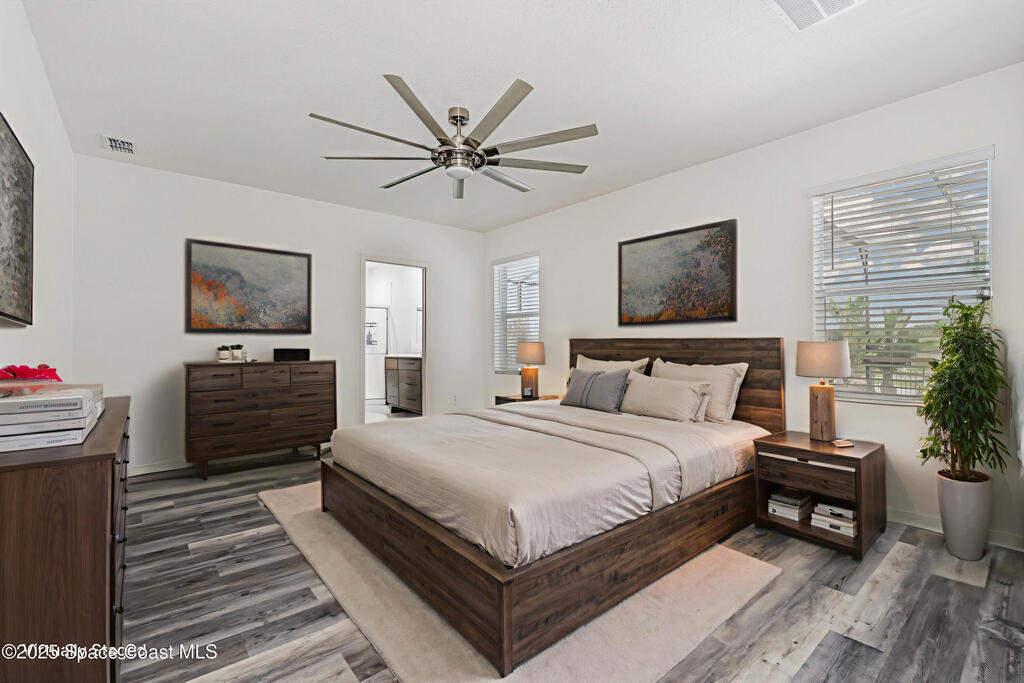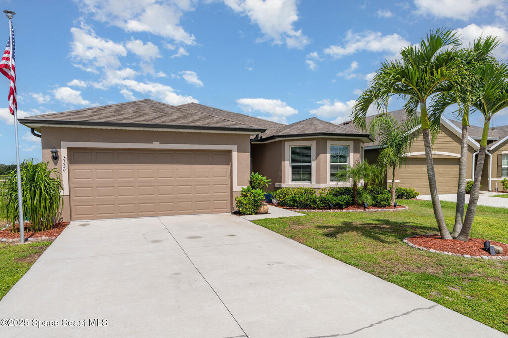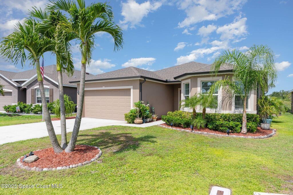Located in the newer Indian River Preserve community! This stunning 3-bedroom, 2-bathroom single-family pool home in Mims, FL was built in 2023 and offers 1,756 heated square feet of modern comfort and style. The heart of the home is the bright eat-in kitchen, featuring a custom backsplash, stainless steel appliances, and a charming bay window. The spacious master suite boasts a dual-sink vanity and walk-in shower, creating the perfect retreat. Step outside to your private oasis with serene golf course views--complete with a covered porch with ceiling fan, screened spa, and a luxury $100K pool with built-in seating. Additional upgrades include beautiful wood flooring throughout, a convenient dog run, a long driveway, and a roomy 2-car garage. Best of all, residents enjoy free golf access at Indian River Preserve, making this home a true golfer's dream. Don't miss the chance to live in style with resort-inspired perks right at your doorstep!
